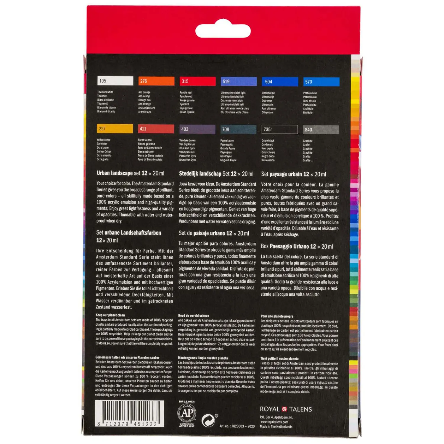 Maak de perfecte urban landschappen! Deze set van 12 x 20 ml acrylverf in een rauw stedelijk kleurenpalet is gemaakt met de urban landschapskunstenaar in gedachten.