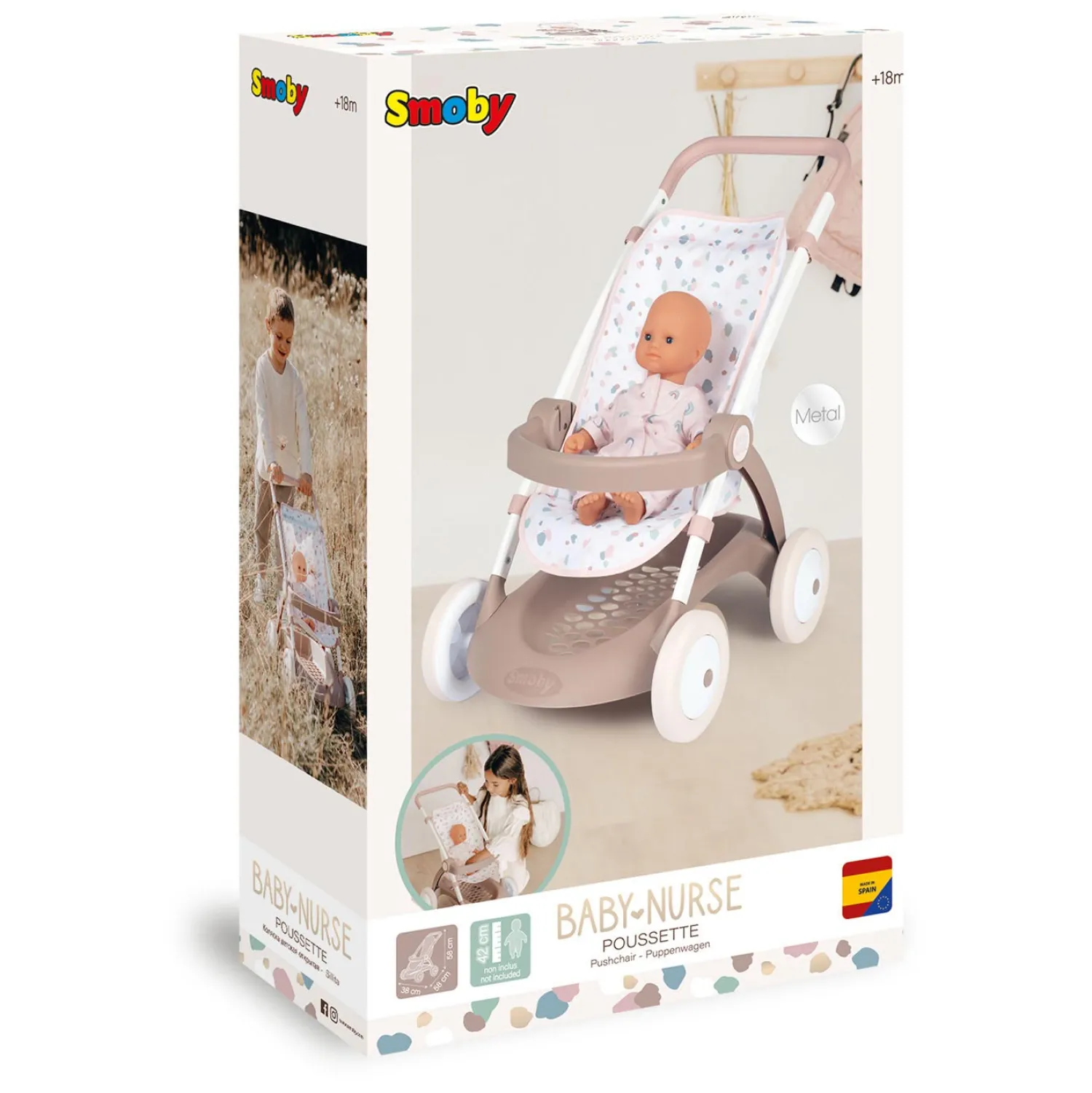 De Baby Nurse Poppenwagen heeft een stevig frame van metaal en kunststof. De zitting is van comfortabel stof en heeft genoeg zitruimte voor babypoppen tot 42 centimeter groot. De hoogte van de handgreep is 58 centimeter. Exclusief pop.