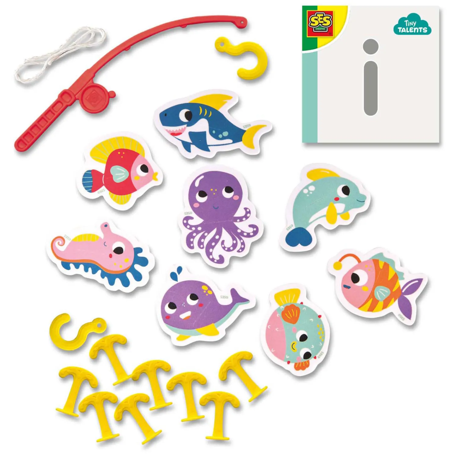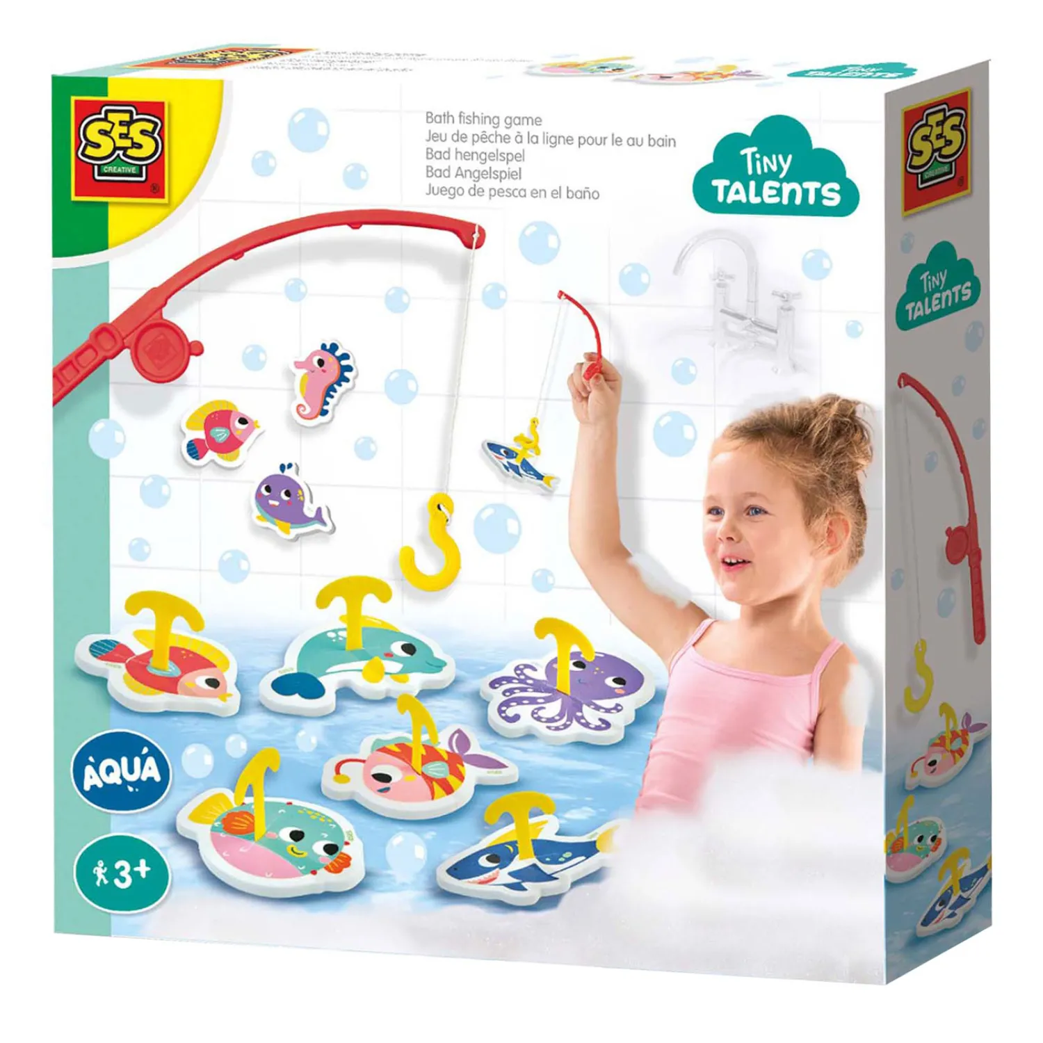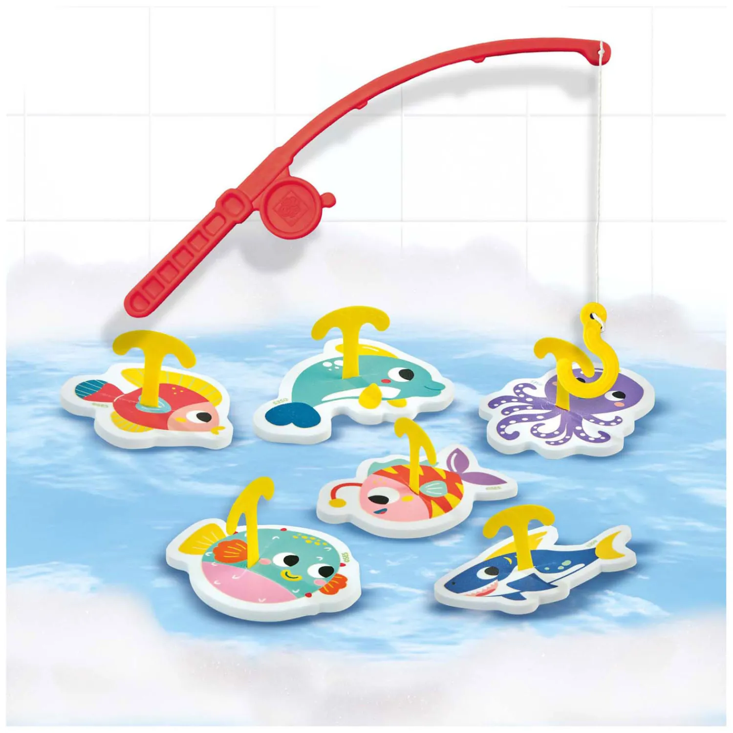 Maak van badtijd een avontuur met het Bad hengelspel – Vissen vangen! Gebruik je hengel met haakje om de 8 kleurrijke zeedieren uit het bad te vissen. Dit spel stimuleert de motorische vaardigheden en zorgt voor veel plezier tijdens het badderen. De set bevat een hengel, 8 foam vissen en haakjes. Perfect voor kinderen die graag spelen en ontdekken in bad!