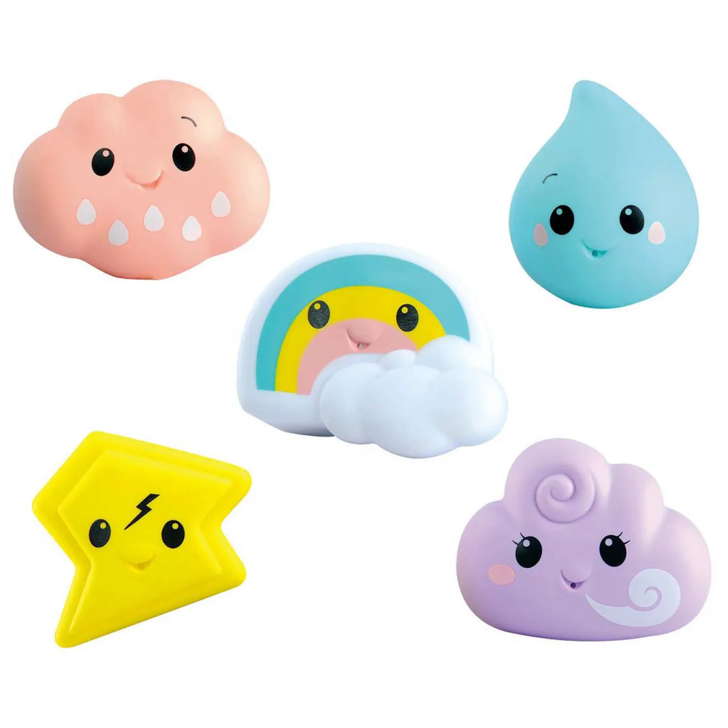 Laat je kindje spelenderwijs kennismaken met regen, wind en zonneschijn in bad! Deze kleurrijke vriendjes zorgen voor eindeloos spetterplezier.