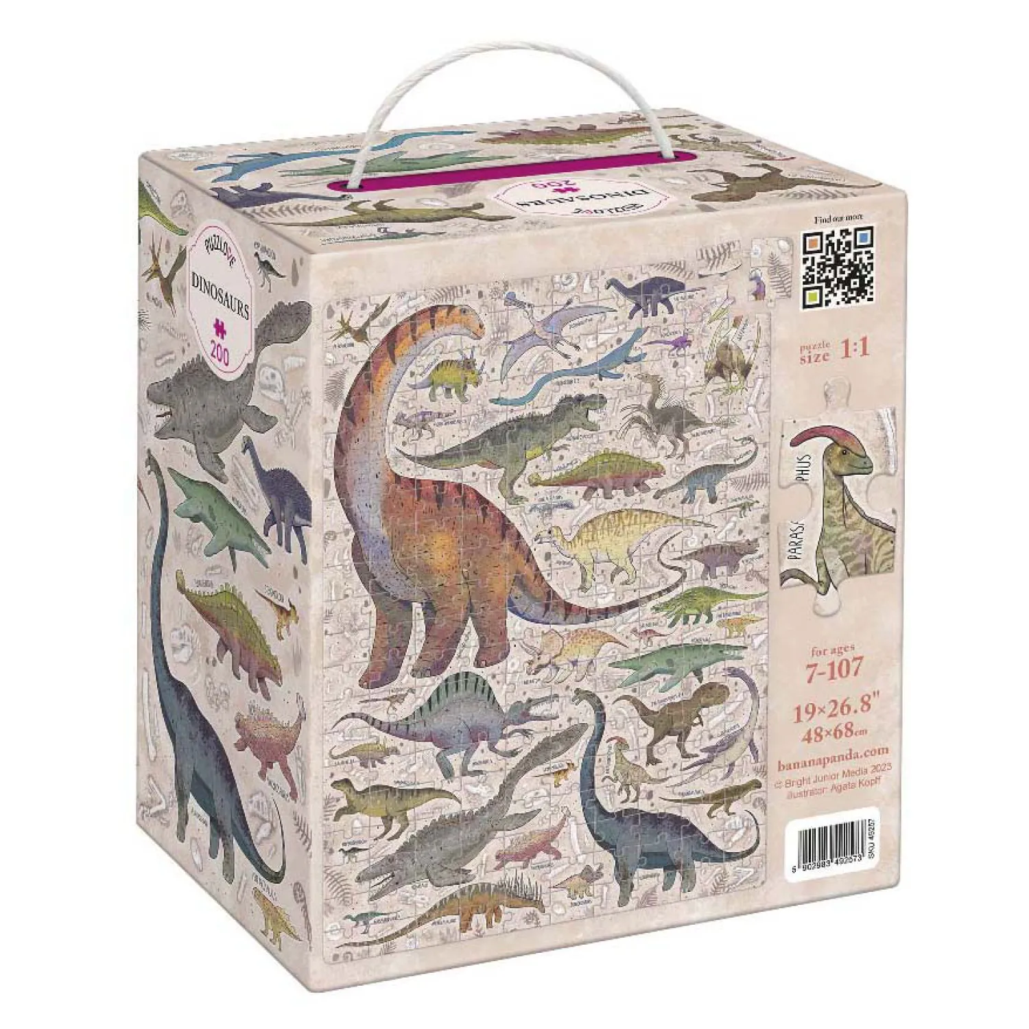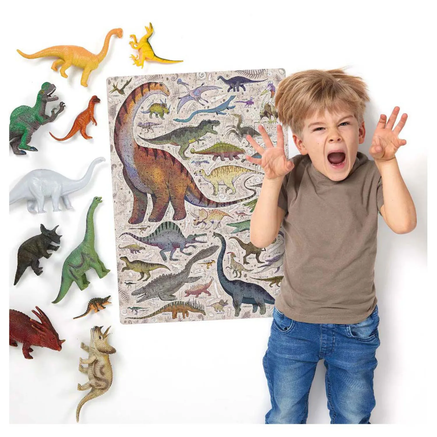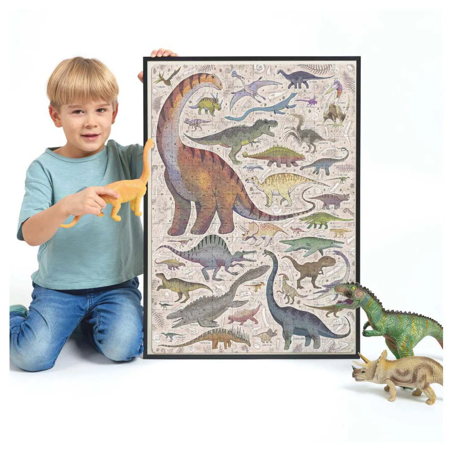 GRRR! Puzzlove Dinosaurs is een geweldig cadeau-idee voor dinosaurusliefhebbers en een puzzeluitdaging voor jongere puzzelaars. Zet ze in elkaar zoals jij wilt: voor ontspanning, met familie en vrienden, of alleen. Ken je alle dinosaurussen en andere reptielen van de illustratie? Laat de afbeeldingen je inspireren om te tekenen, boeken over dinosaurussen te pakken en andere pleziertjes.