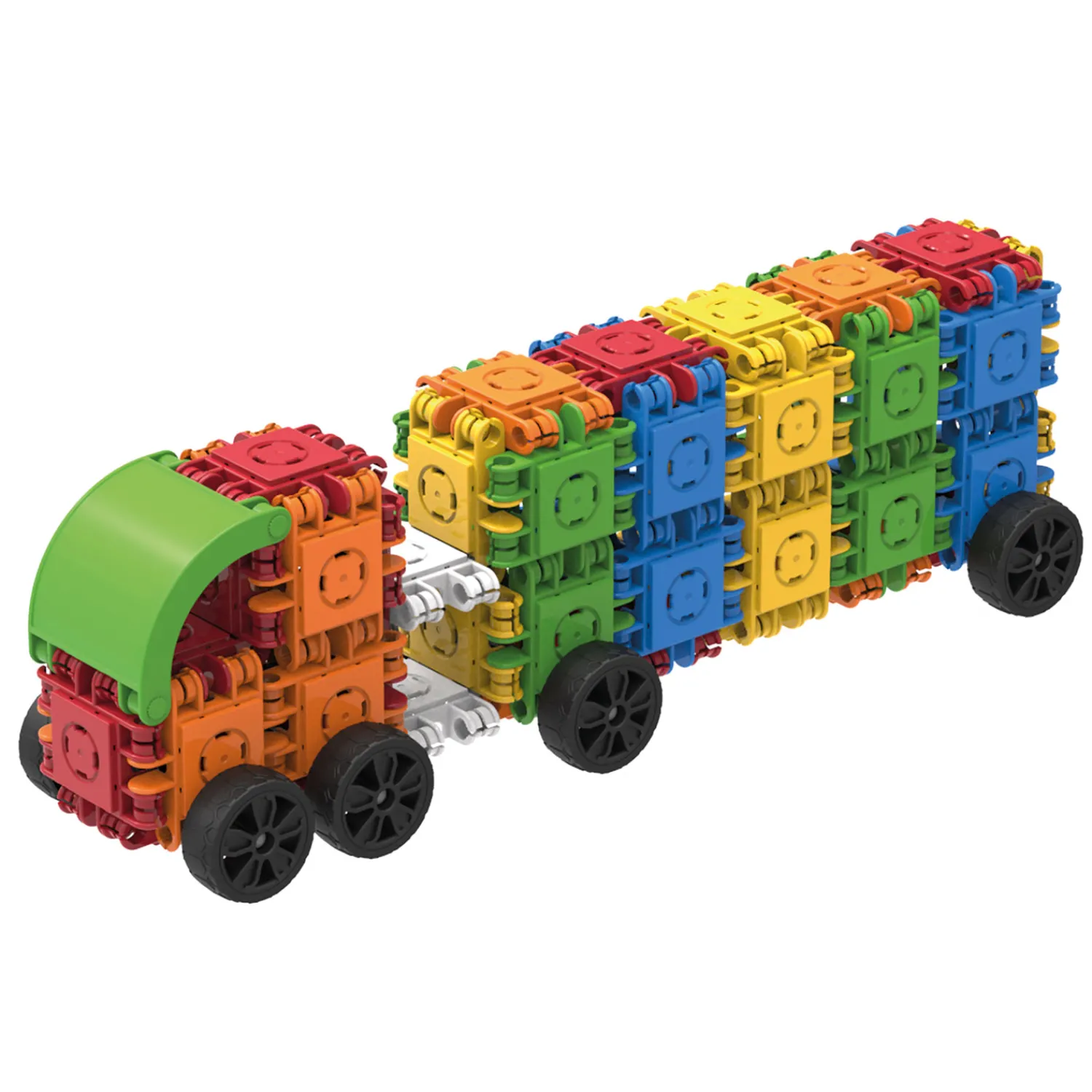 Clics en Clicformers lijken op elkaar, maar de bouwblokjes kunnen niet door elkaar gebruikt worden. Clicformers zijn groter, waardoor je meer geometrische vormen kan maken en creatiever kan bouwen.