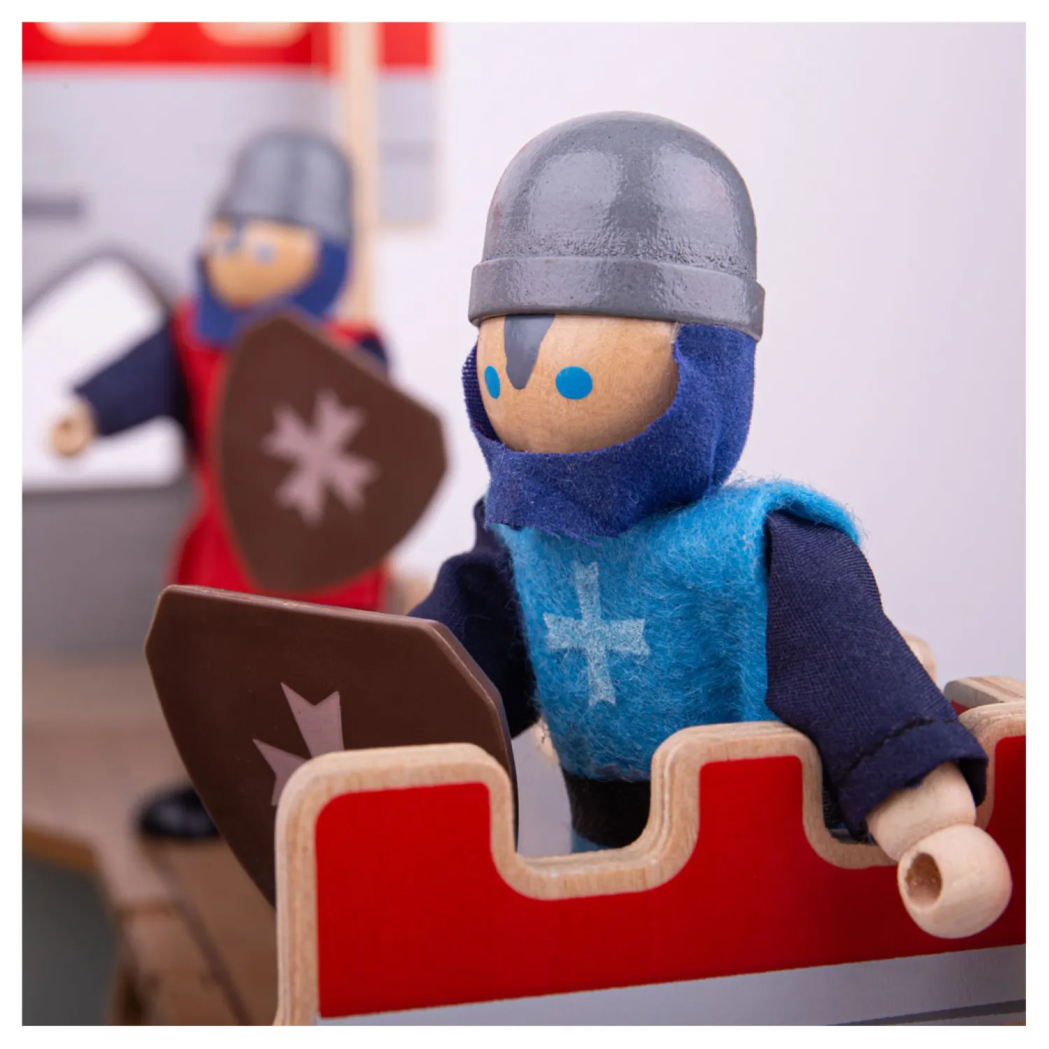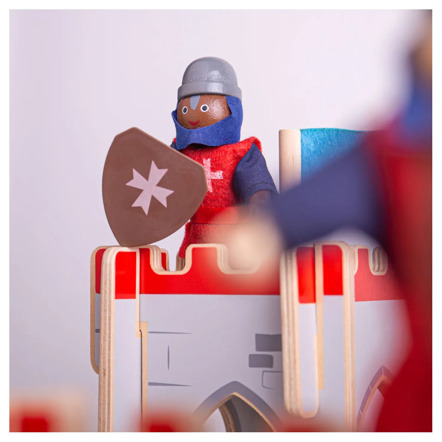Dit ridderkasteelspeelgoed is een geweldige aanvulling op King George’s Castle, een prachtig houten kasteel (artikel 2999912). Zal het House of Blue of House of Red het kasteel claimen? Je zult het moeten uitvechten met de vier ridders om te beslissen!