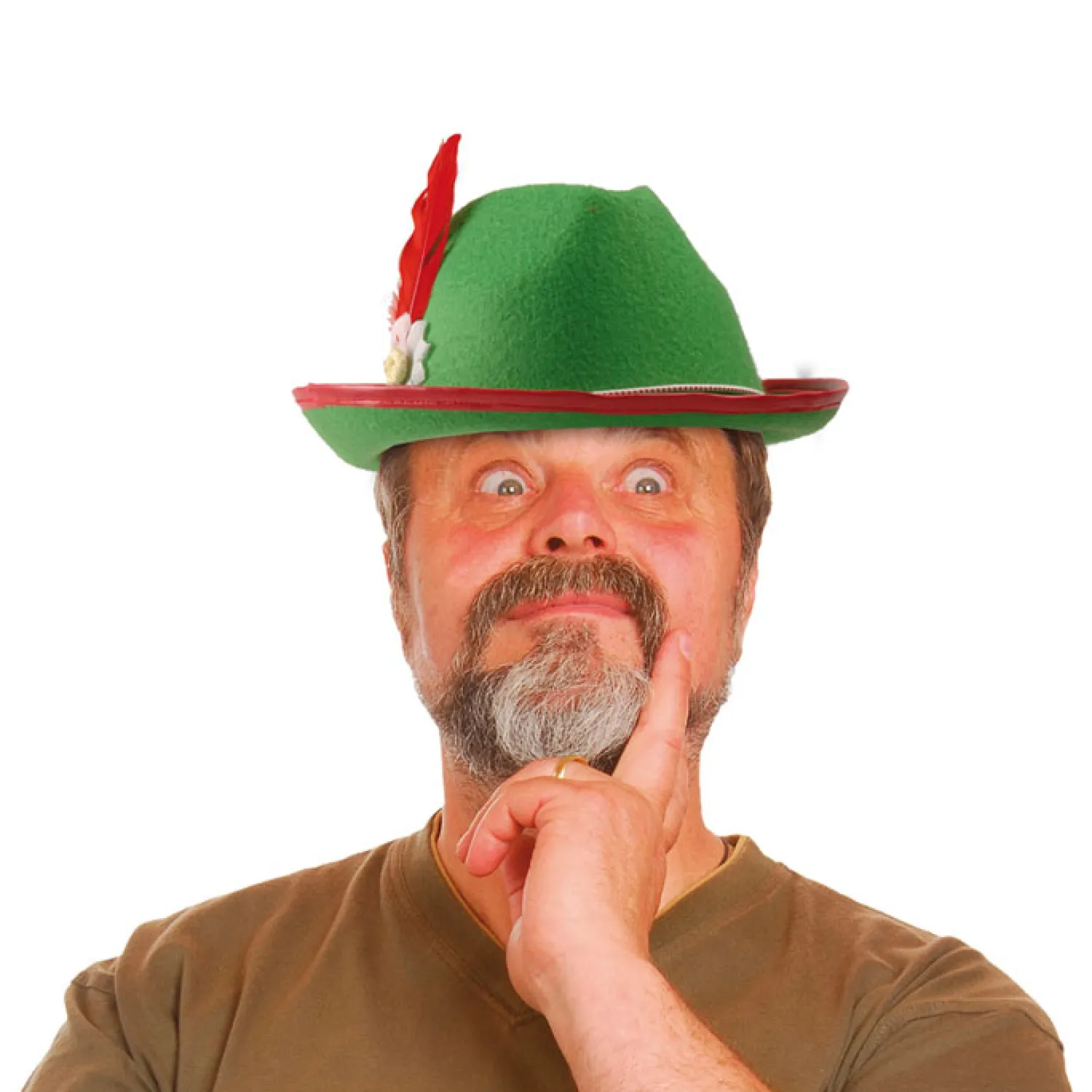 Groene Tiroler hoed met rode veer.