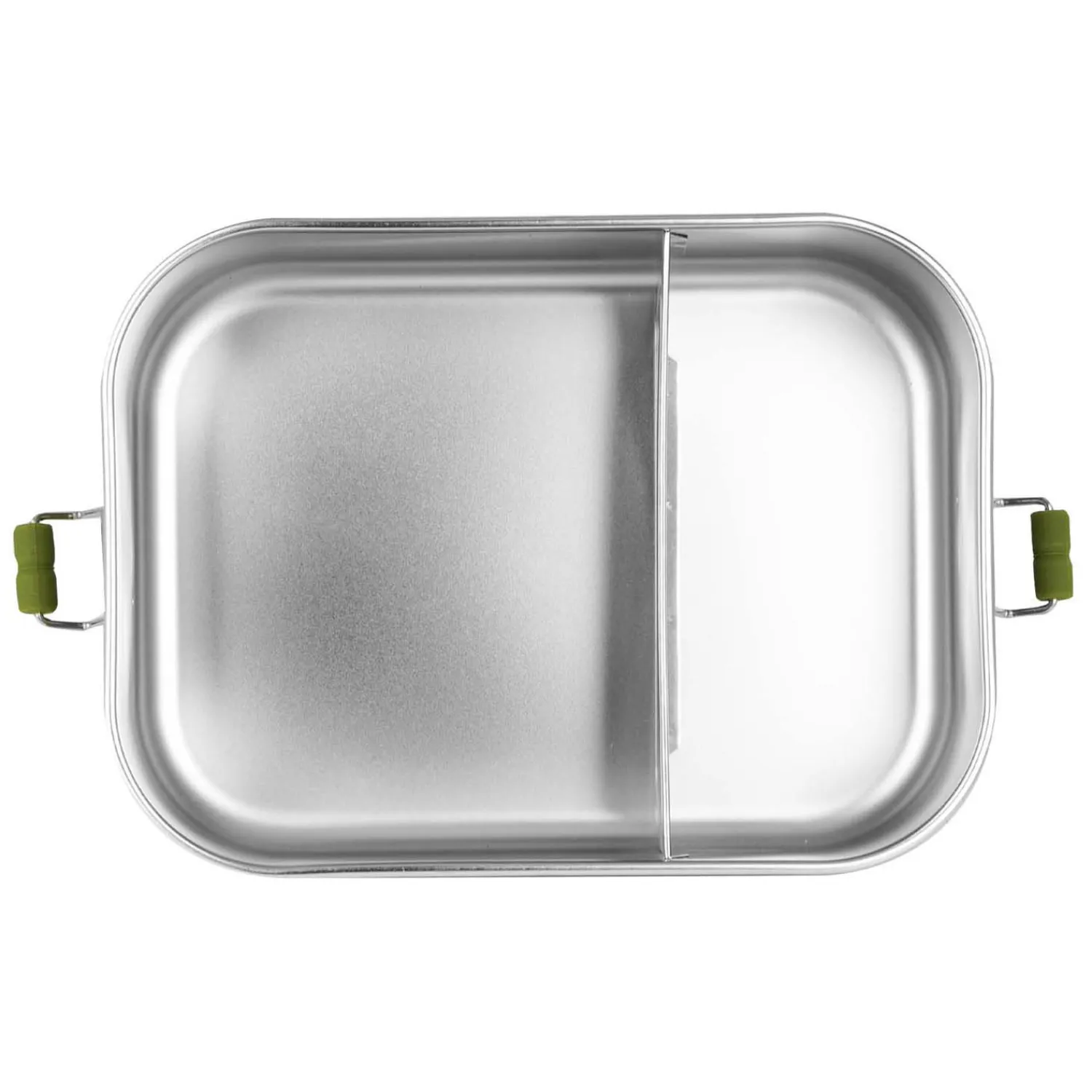 Deze duurzame brooddoos is volledig gemaakt van roestvrij staal. Dit sterke materiaal bevat geen schadelijke chemicaliën. Het is ideaal voor het bewaren van voedsel omdat het geen kleur, smaak of geur absorbeert.