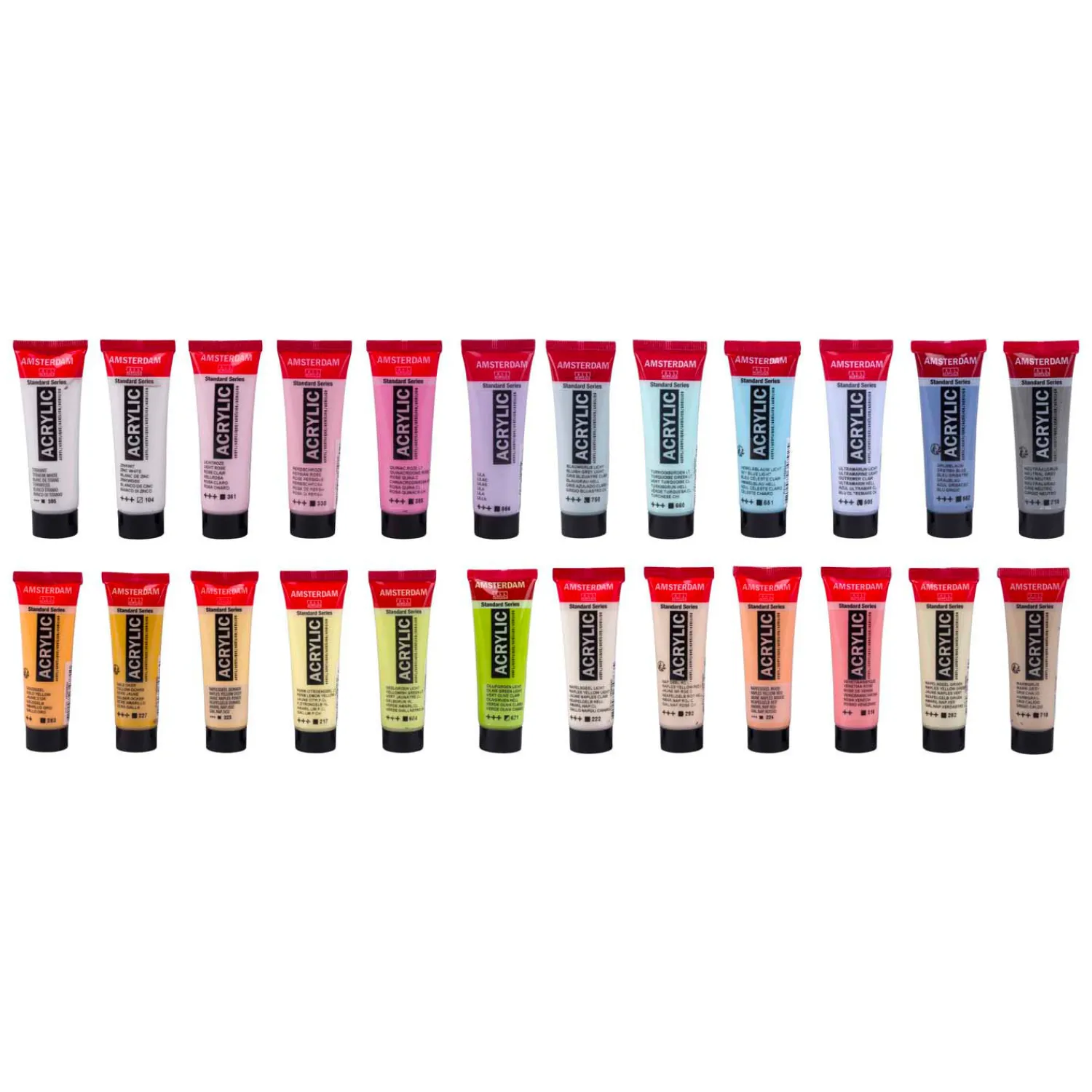 Deze set bevat 24 x 20 ml tubes acrylverf met het perfecte pastelkleurenpalet voor prachtig zachte kunstwerken.