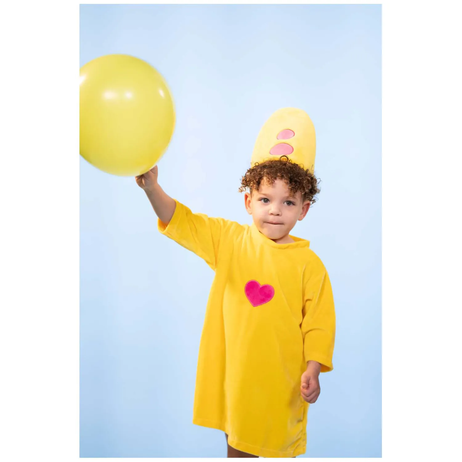 Verkleed jezelf als Bumba met het verkleedjurkje en beleef net als het vrolijke clowntje de leukste avonturen. Het verkleedjurkje is gemaakt van zacht geel pluche en op de voorkant staat een roze hartje. Door middel van klittenband aan de achterkant is het verkleedjurkje makkelijk aan- en uit te trekken. De maat van dit verkleedjurkje is 98/104. Let op! Het Buma verkleedjurkje wordt geleverd exclusief het Bumba hoedje. Het hoedje is bij Lobbes apart verkrijgbaar.
