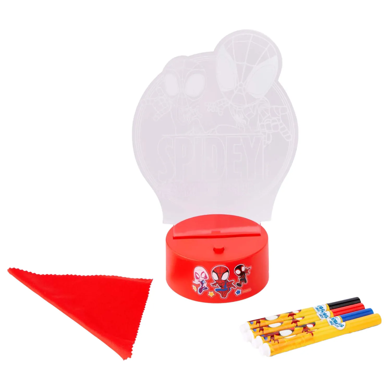 Geschikt voor kinderen vanaf 3 jaar. Inclusief 4 stiften, LED lamp en een sjabloon.