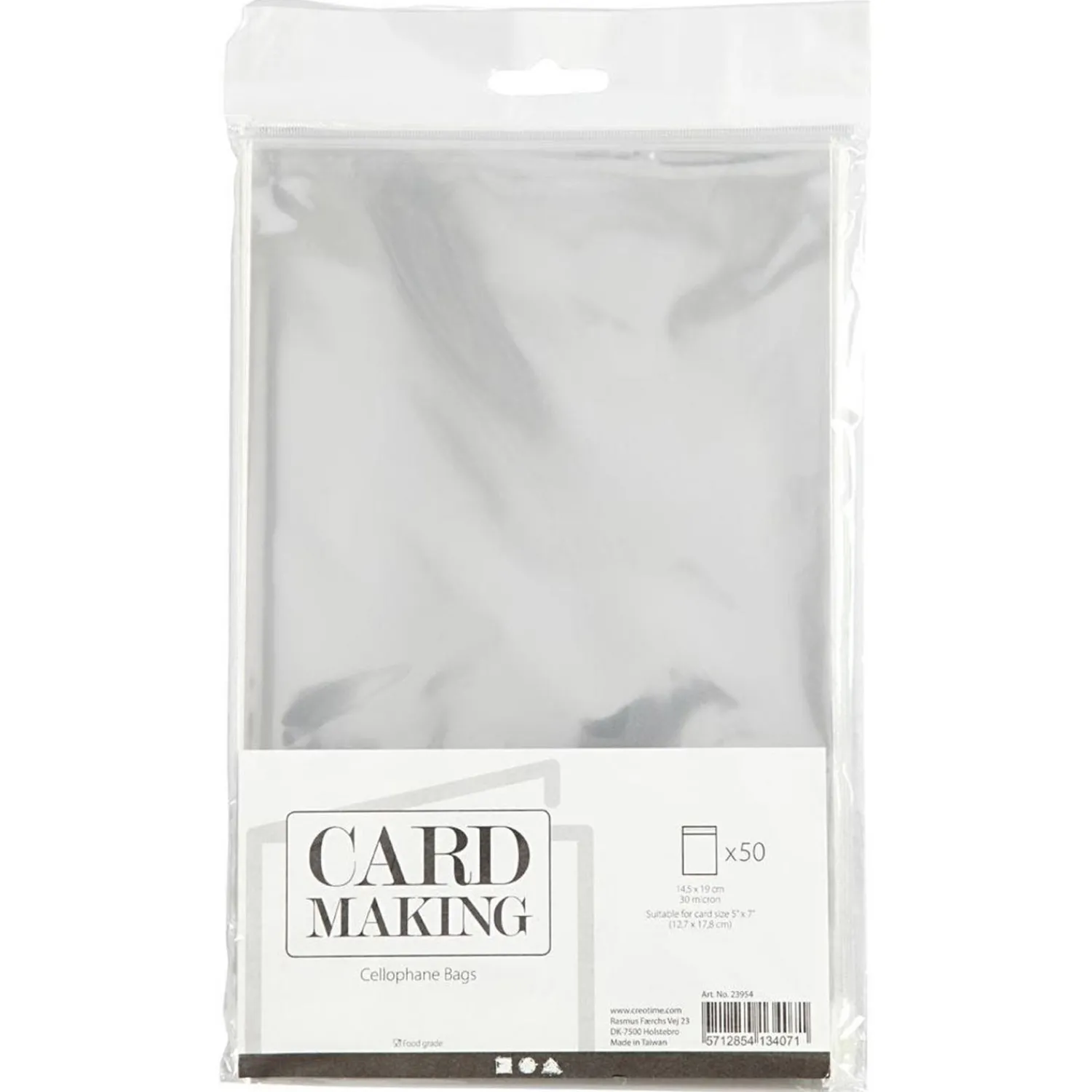 Cellofaan kan soms net de finishing touch geven aan een cadeautje of kaartje. Deze cellofaanzakjes van transparant folie zijn met hun buitenmaat van 14,5 cm op 19 cm ideaal voor een kaartje van 12,7 cm op 17,8 cm. Maar ze passen ook mooi om een klein cadeautje. De dikte van het cellofaan is 30 micron. De set bestaat uit 50 handige inpak zakjes.