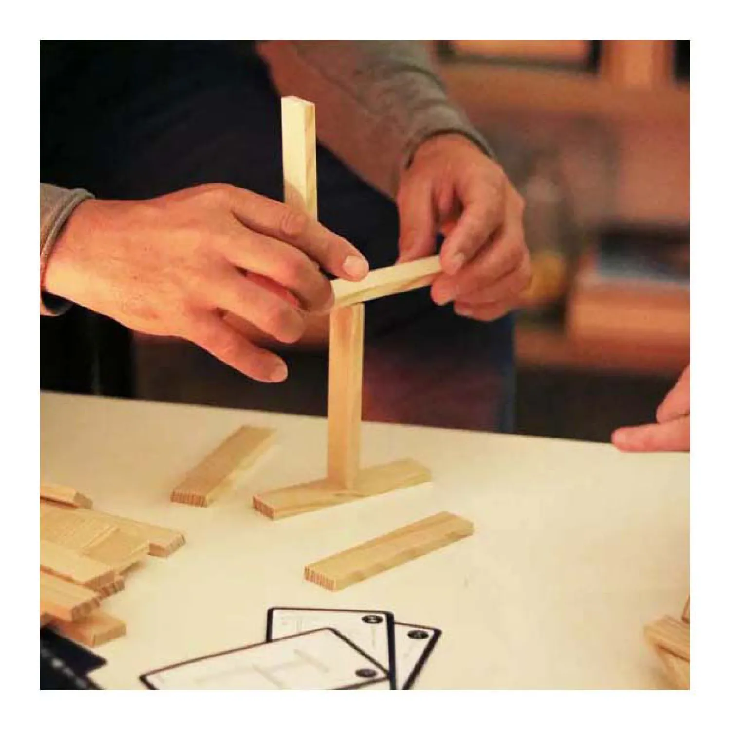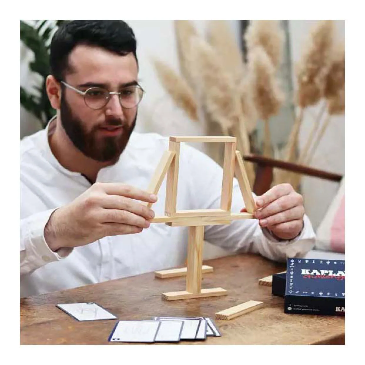 KAPLA Challenge is een nieuw spel in de wereld van KAPLA. Het moedigt zowel het denken als het doorzettingsvermogen aan, teneinde het perfecte evenwicht te vinden. Kaart na kaart worden de structuren moeilijker. Je moet logisch nadenken, creatief zijn en een manier zoeken om het evenwicht in de Challenge te vinden.