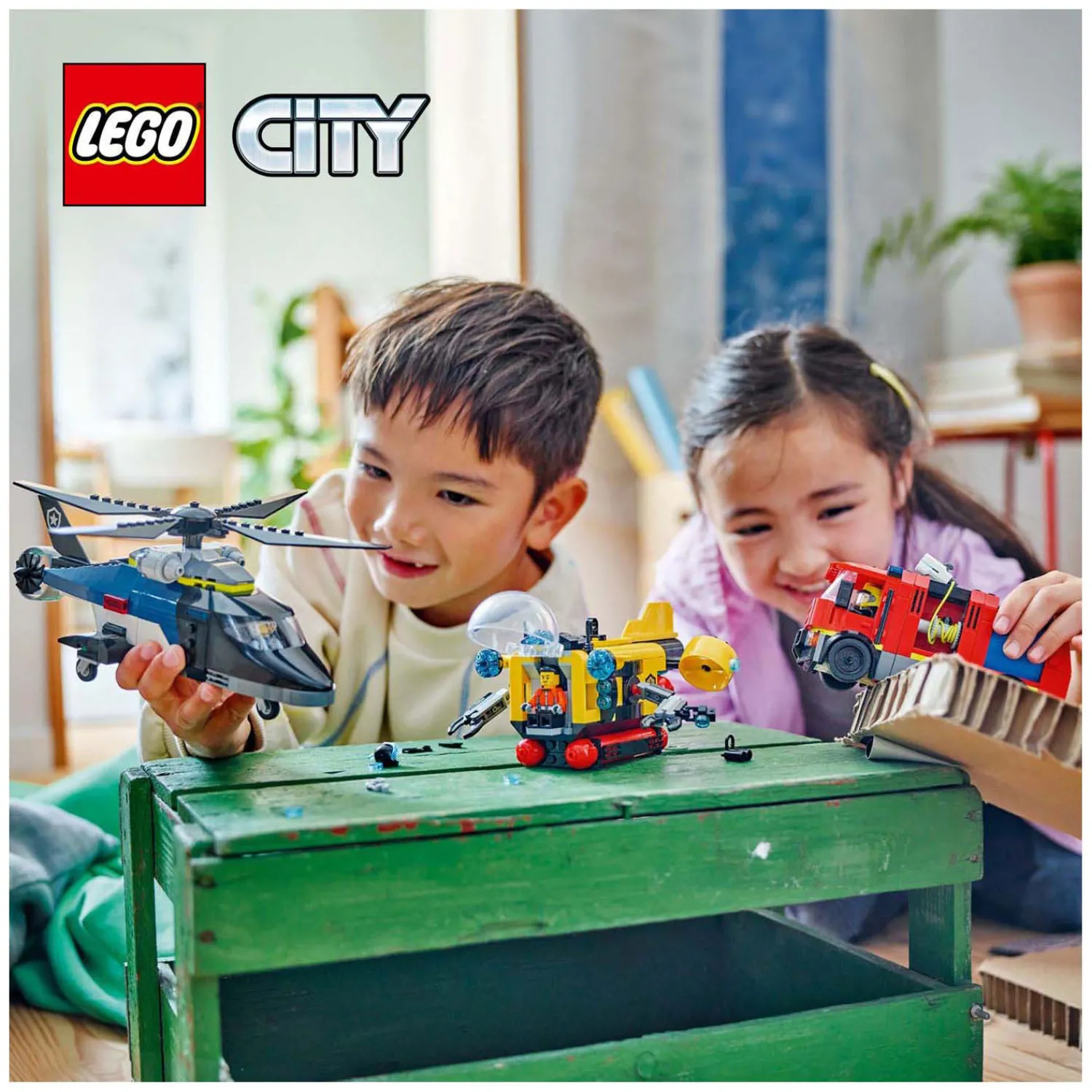Bouwset met brandweerauto, helikopter en onderzeeër – beleef drie keer zo veel plezier met de LEGO® City Helikopter, brandweerauto en onderzeeër remix voor kinderen vanaf 7 jaar die dol zijn op bouwen en creëren