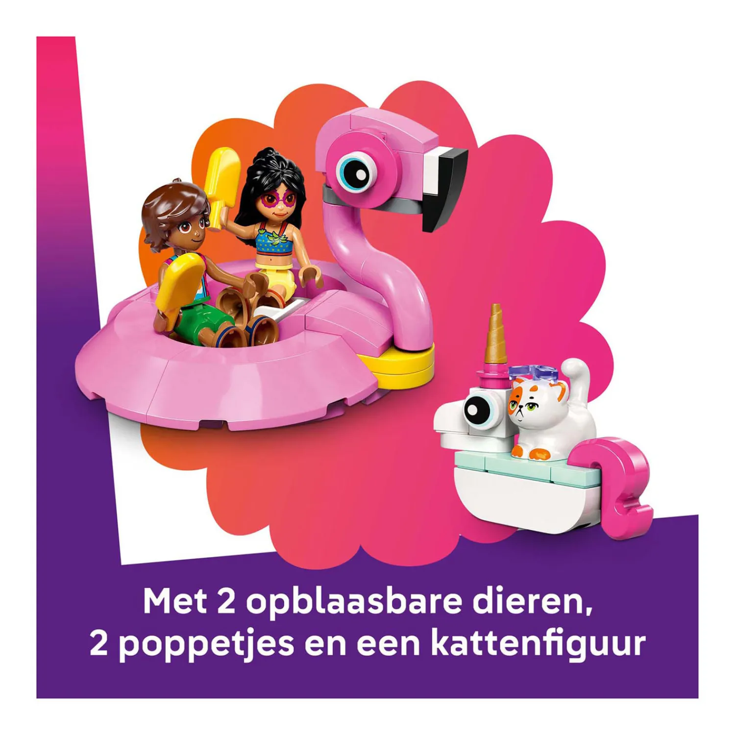 Bouwset voor fantasiespel – deze Zwembadfeestje met flamingo en eenhoorn set voor kinderen is een leuke verrassing voor meisjes en jongens vanaf 5 jaar en bevat 2 minipoppetjes, een kat en een heleboel accessoires