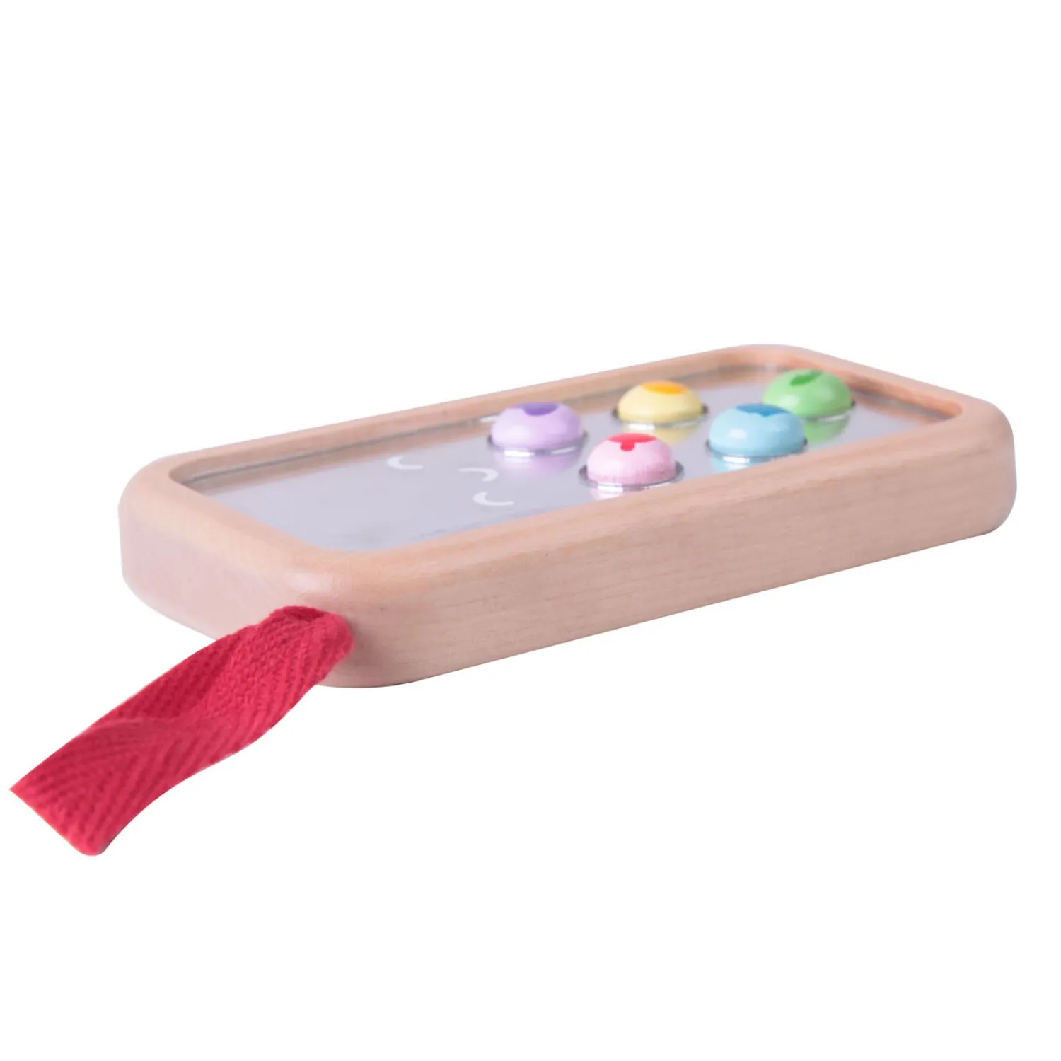 Jouw eerste eigen telefoon! Druk op de knopjes en hoor de verschillende geluidjes en muziekjes die uit de telefoon komen. De telefoon is gemaakt van hout en kunststof en heeft een touwtje aan de hoek om de telefoon vast te houden. Dit stimuleert het oefenen van de motoriek, net als de knopjes op de telefoon. Werkt op 3 LR44 batterijen (niet inbegrepen).
