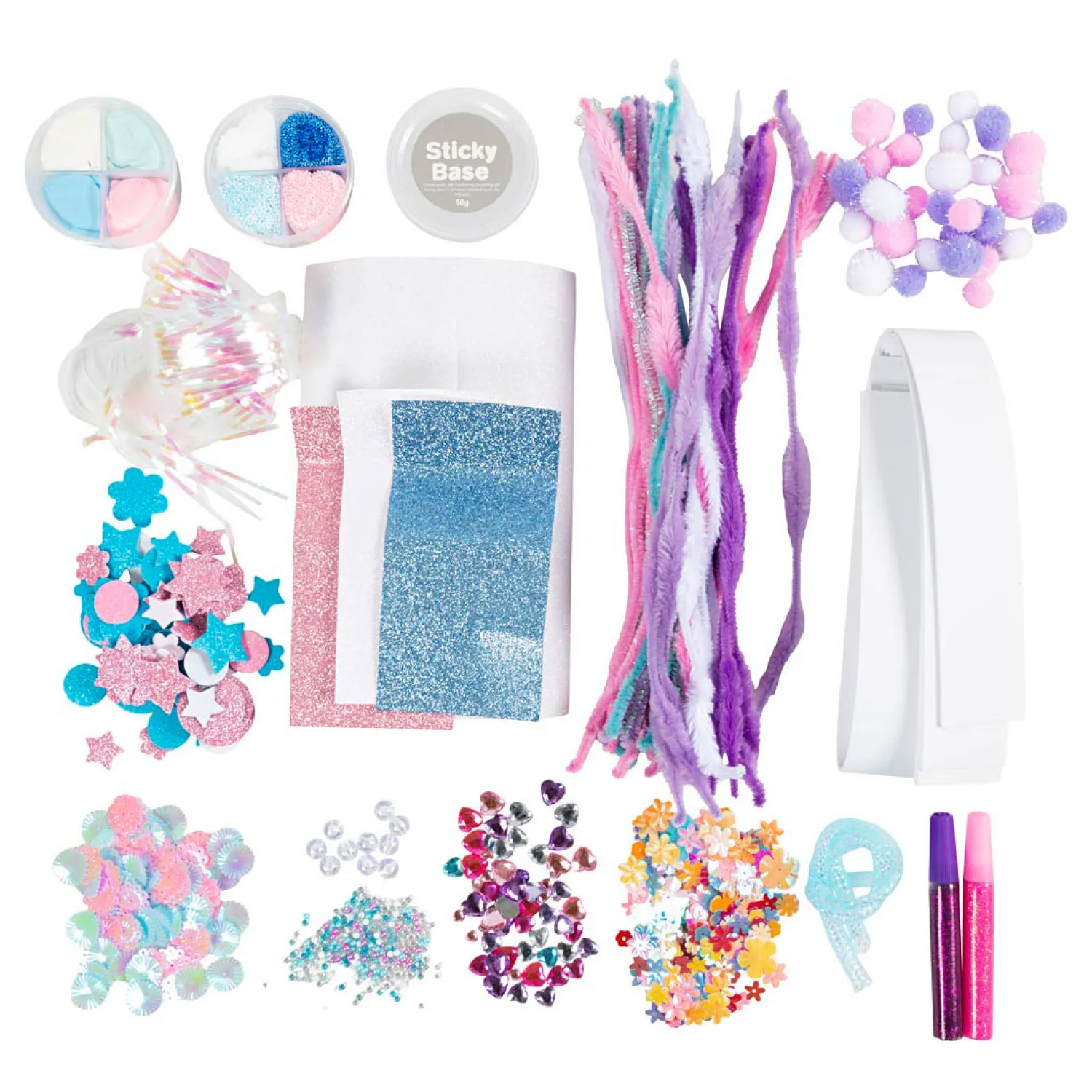 Een doos met creatief materiaal dat exploratie, spel en leren aanmoedigt en die tot de verbeelding, de zintuigen en creativiteit prikkelt. Een beetje creatieve inspiratie zit in de doos.Gebruik Sticky Base zowel als lijm en als boetseerklei. Combineer Silk Clay en Foam Clay met de reeks verschillende materialen om een wereld van fantasierijke figuren te creëren. Kortom: gebruik uw fantasie en ontdek de creatieve mogelijkheden..Inhoud: EVA-schuim, EVA-glitterschuim, pijpenragers, pijpenragers met glitter, Foam Clay®, Silk Clay®, Sticky Base, EVA-schuimvormen, pailletjes met bloemenprint, iriserende stroken, plastic buis, strass-stenen, kralen, glaskralen, ronde pailletten, glitterpapier, pompons
