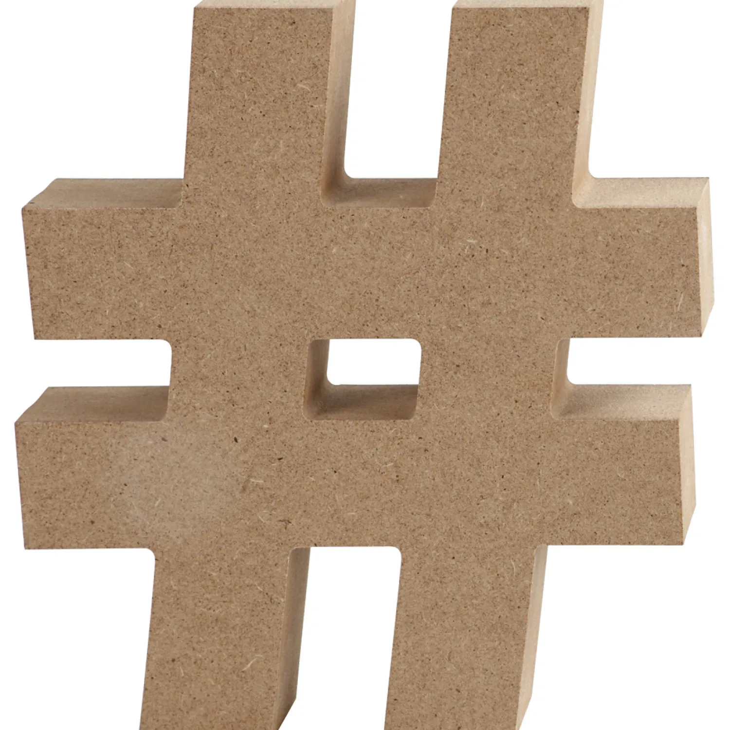 Versier je eigen hashtag! Het MDF hout is makkelijk te verven en decoreren naar je eigen smaak. Ga je ‘m roze maken? Of blauw? Of een hele andere kleur? De ‘#’ is 13 cm hoog en 2 cm dik. Na al het knutselen kun je de hashtag ergens als decoratie neerzetten.