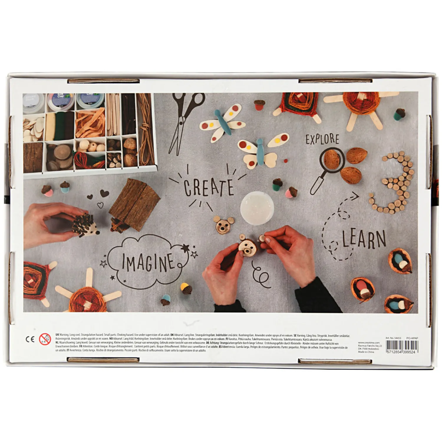 Met deze complete doos met knutselmateriaal maak je een wereld van fantasierijke figuren. De creatieve materialen nodigen exploratie, spel en leren aan en prikkelen de verbeelding, de zintuigen en de creativiteit. Om te helpen en de creativiteit te starten staat er creatieve inspiratie op de achterkant van de box geprint..