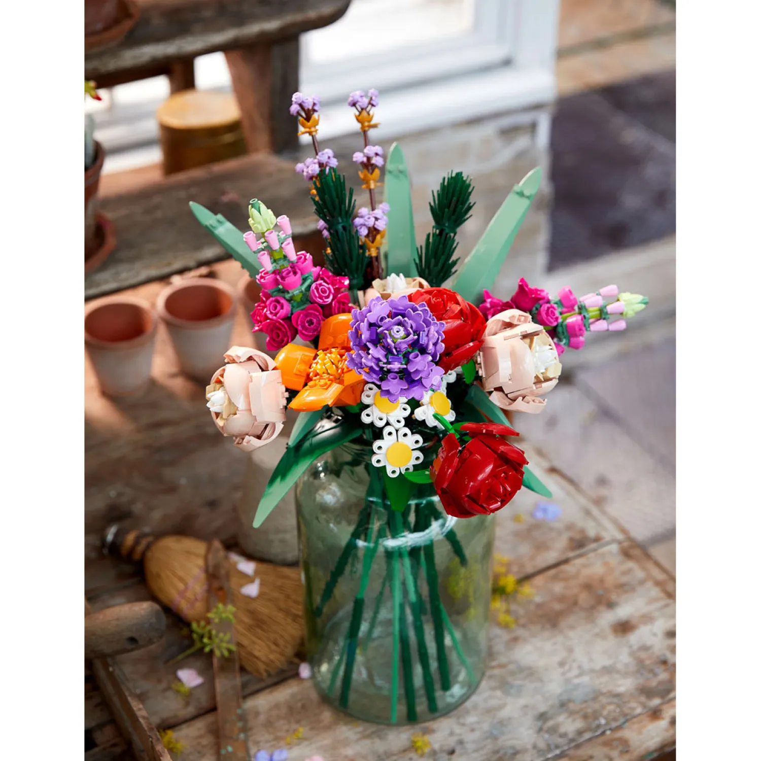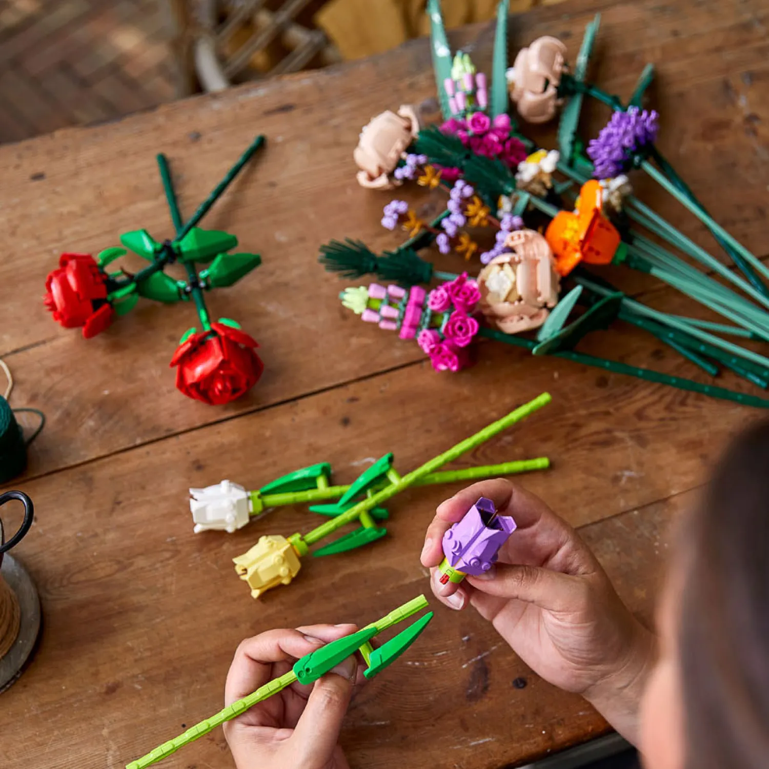 Helemaal zonder werk is dit boeket niet: de ontvanger zet de bloemen zelf nog in elkaar. Zo geef je een mooi boeket en een leuke, ontspannende activiteit cadeau!