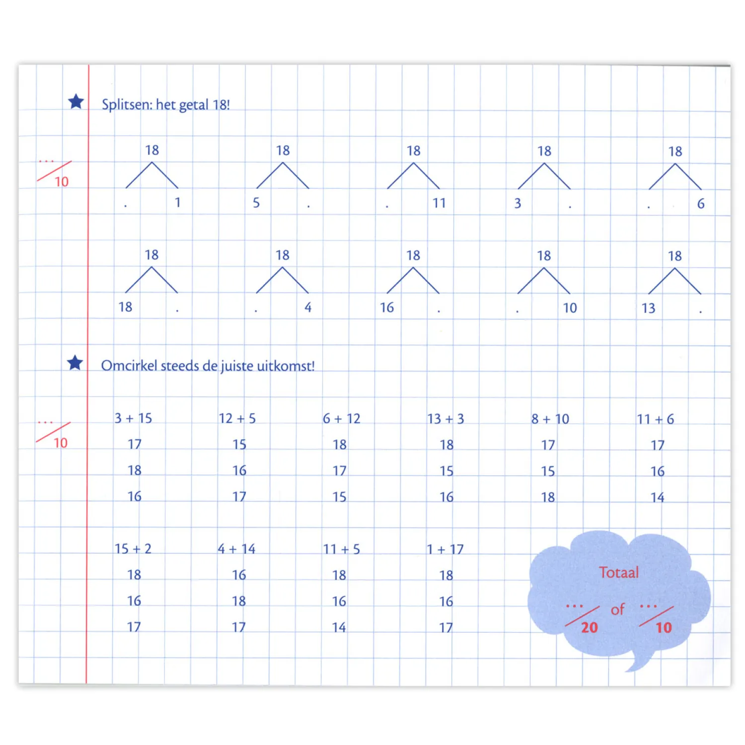 In dit leuke oefenschrift leert uw kind vlot optellen en aftrekken tot en met 20 zonder overschrijding van het tiental! De oefeningen volgen het schoolleerprogramma zodat uw kind thuis verder kan inoefenen wat het daar al geleerd heeft: getallenrijen aanvullen, sommen maken, getallen vergelijken, splitsingen maken, enzovoort. Inhoud: 48 pagina’s. Uitvoering: ingenaaid