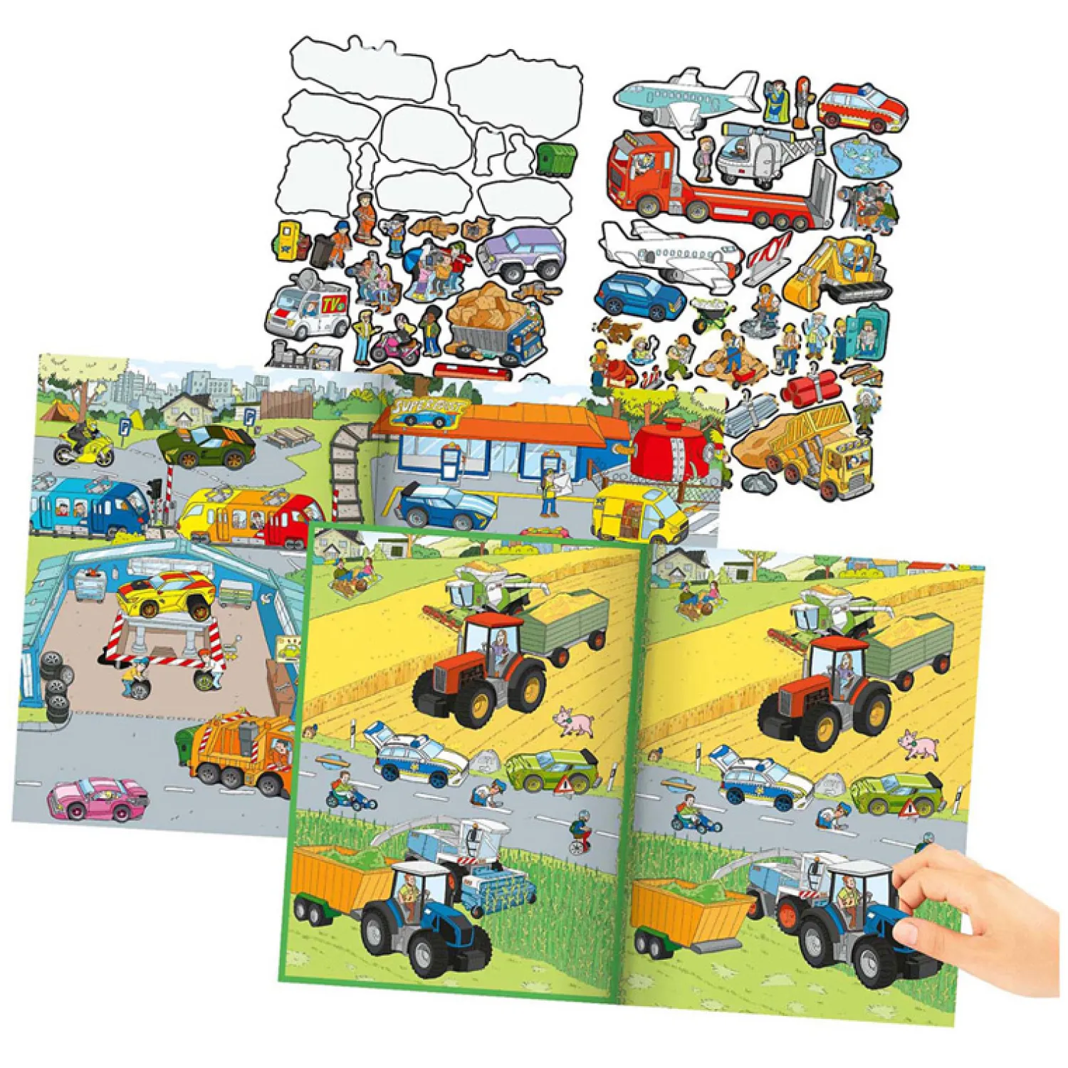 •Stickerboek met 24 pagina’s over het vrolijke stads- en landleven