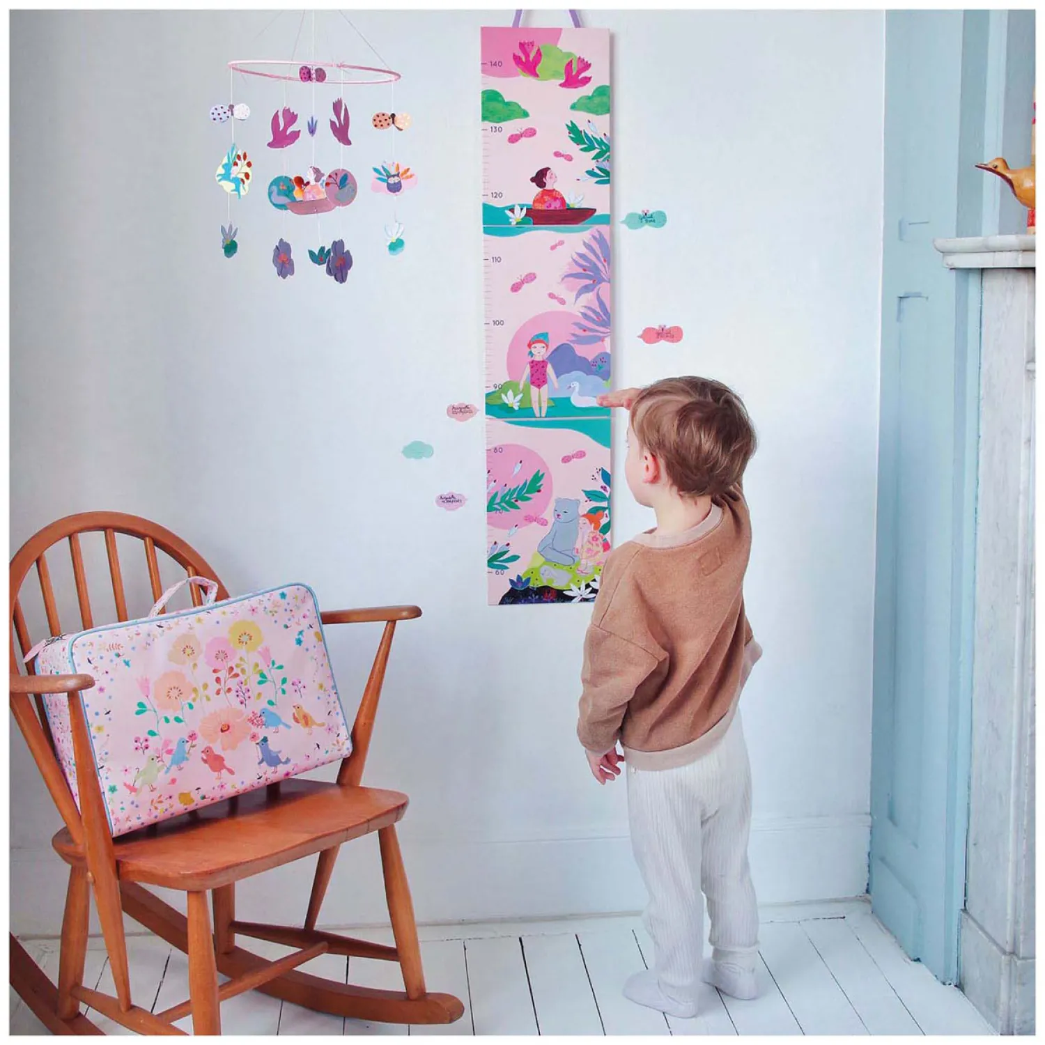 Een grote, kleurrijke meetlat van 140 cm, voor aan de muur met herbruikbare stickers! De stickers zijn perfect om het jaartal of de naam + leeftijd op te schrijven en zo herinneringen vast te leggen. De meetlat is versierd met afbeeldingen van een prachtig meer en mooie natuur.