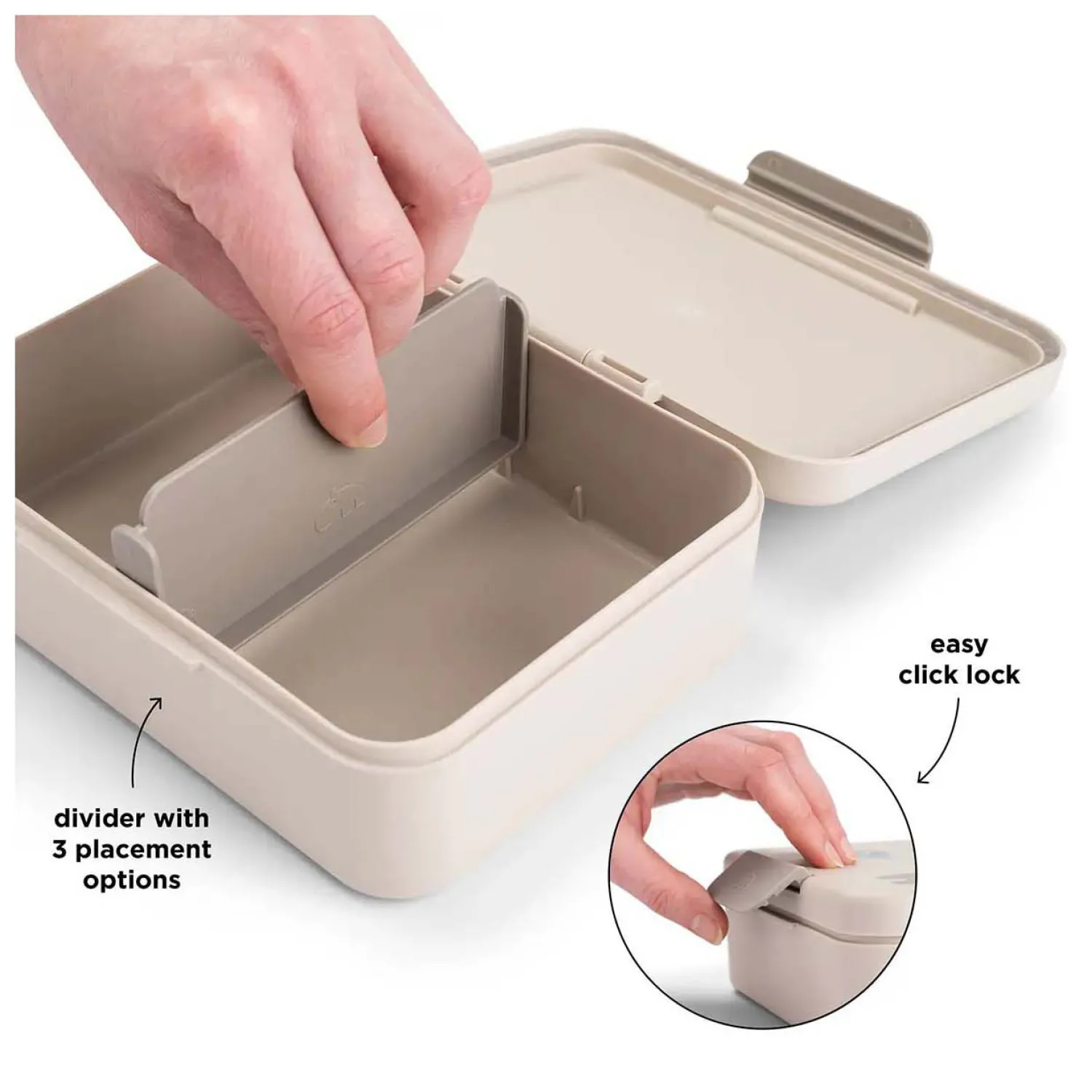 Met de slimme, uitneembare verdeler kun je eten en snacks eenvoudig scheiden. Zo leg je bijvoorbeeld boterhammen aan de ene kant en stukjes fruit of groenten aan de andere kant. De verdeler is flexibel te plaatsen, zodat de lunchbox steeds weer past bij de maaltijd van de dag.