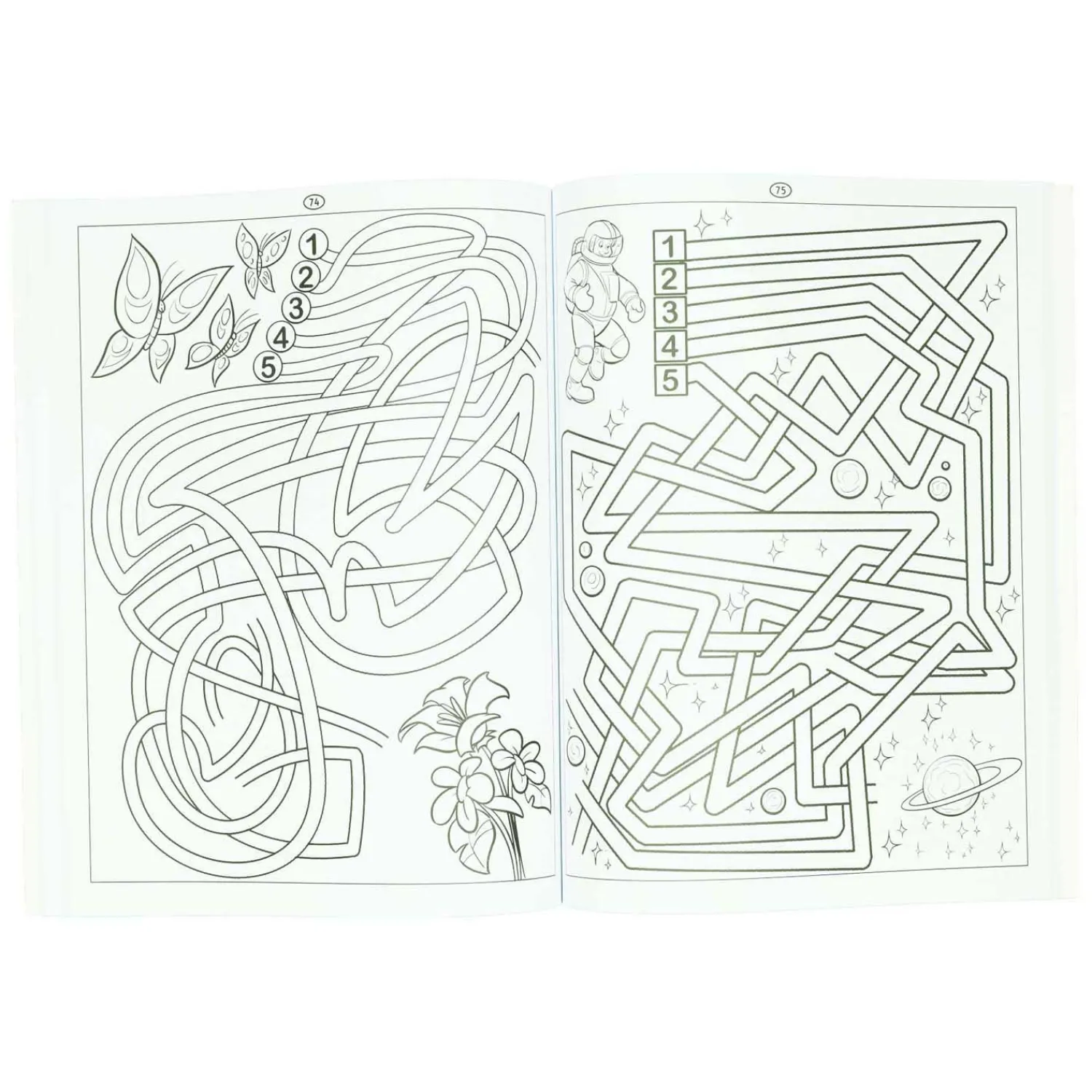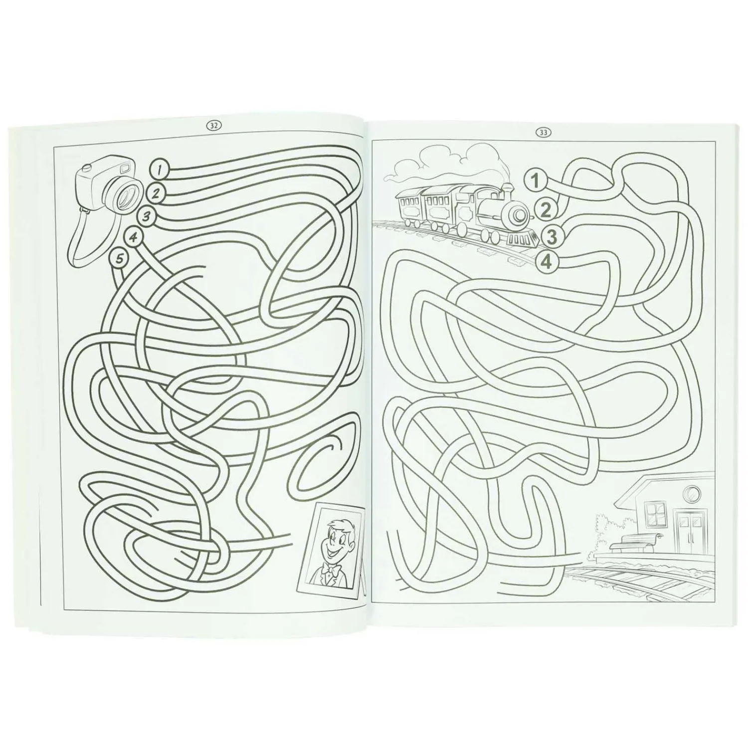 Vind je weg door de wirwar van paden in 115 leuke doolhoven! Puzzelboekje voor kinderen vanaf 4 jaar.