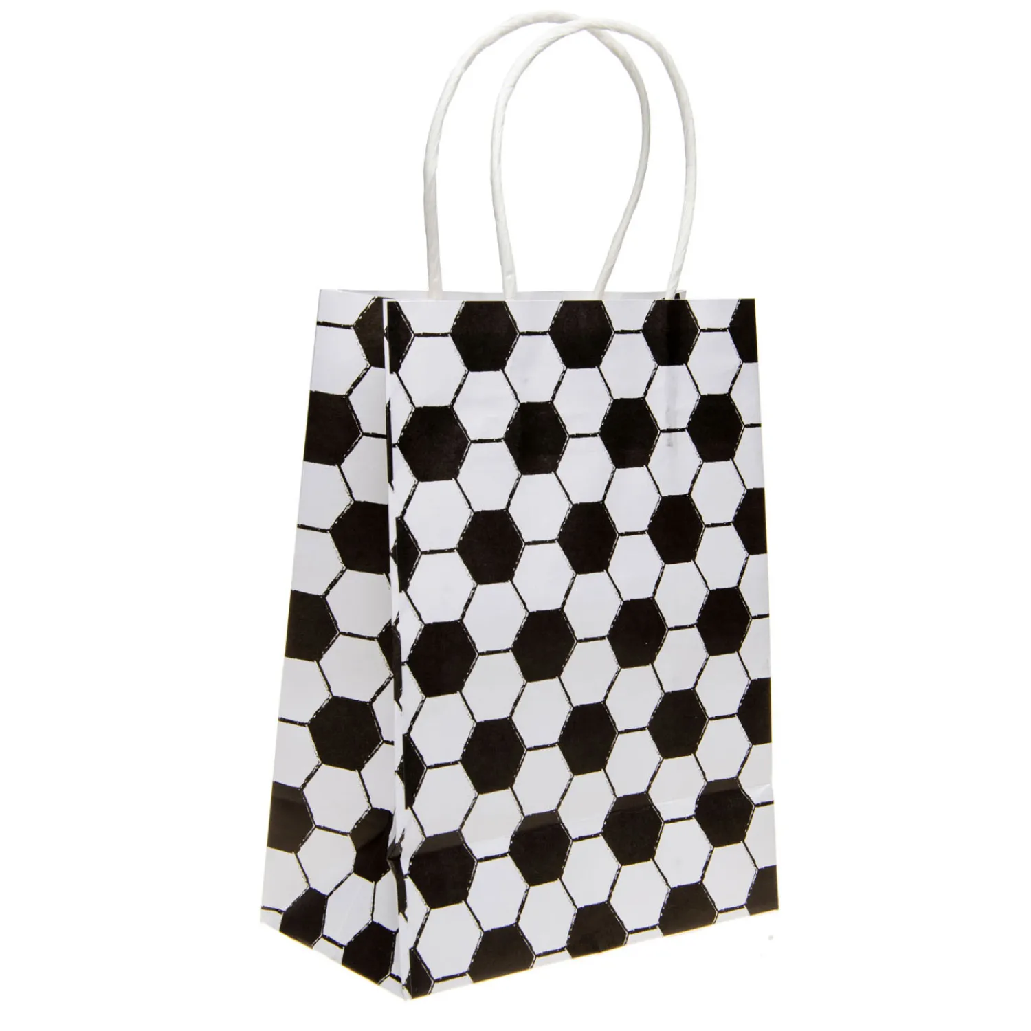 Vrolijk geschenktasje met een zwart-wit voetbalpatroon. Ideaal om een cadeautje voor een jarige voetballiefhebber in te verpakken. Het geschenktasje is 16 bij 22 bij 9 centimeter groot en gemaakt van 100 gsm papier.