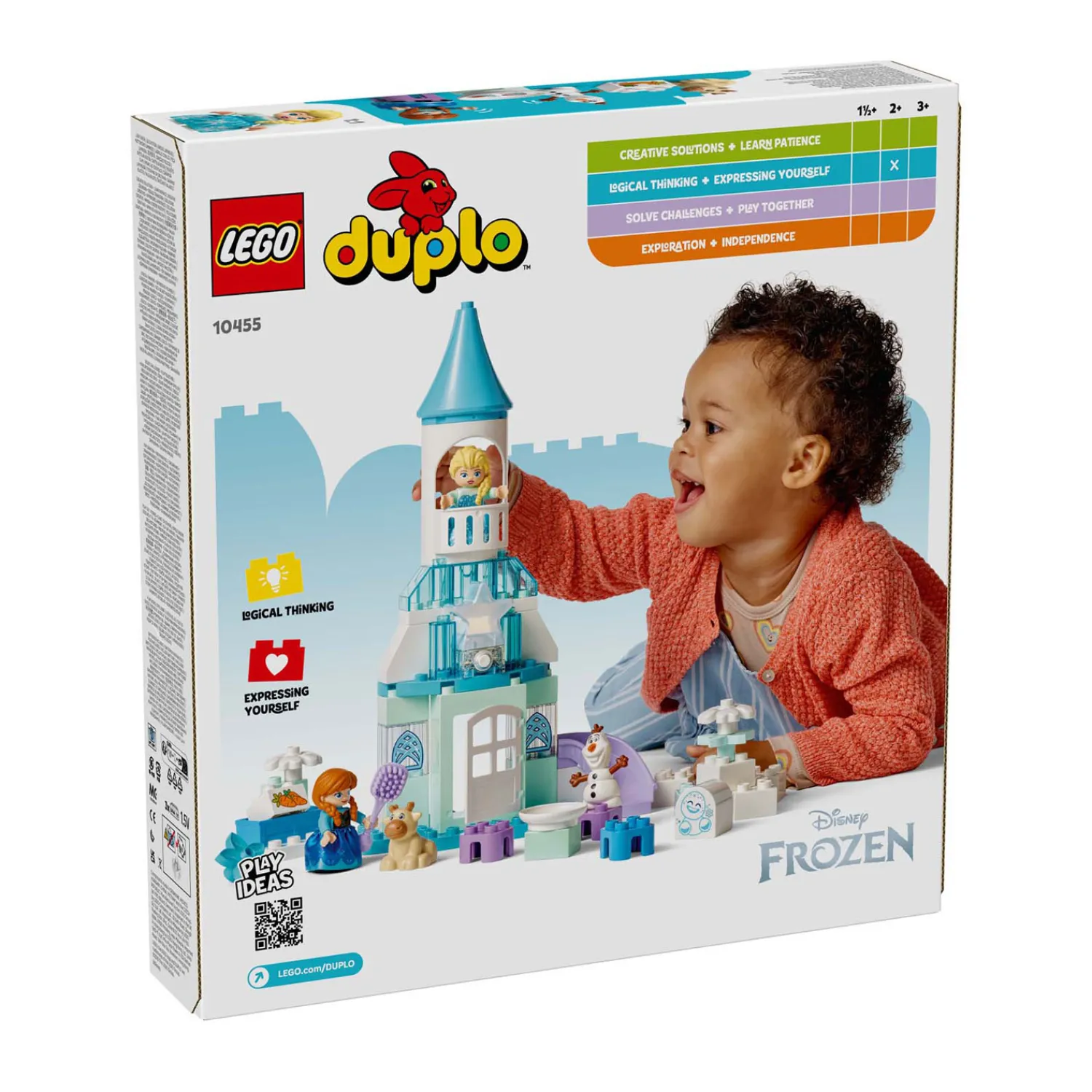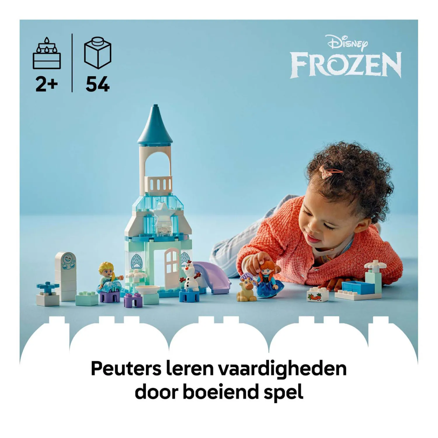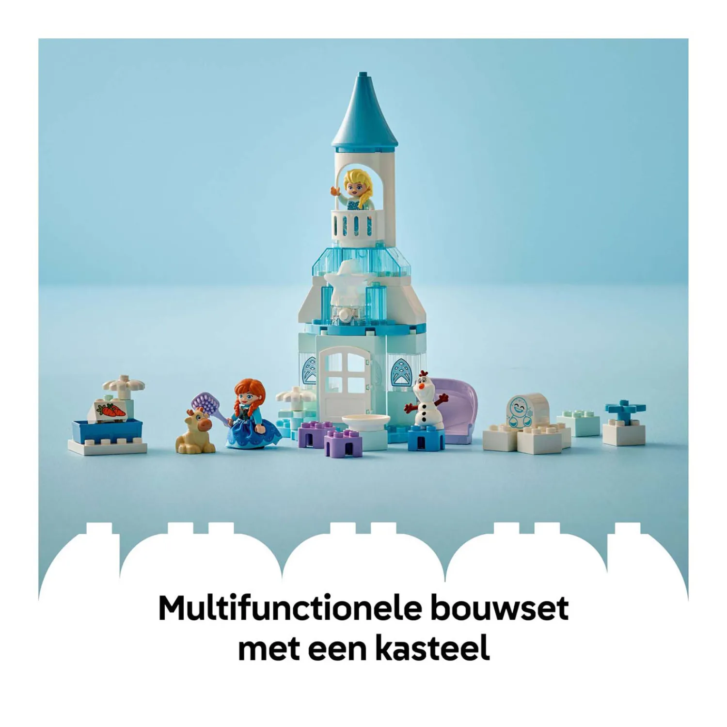 Frozen kenmerken – de set bevat 5 LEGO® DUPLO® �? Disney personages: Elsa, Anna, Marshmallow de Snowgie, baby Sven en Olaf, plus accessoires zoals een glijbaan, voederbak en borstel