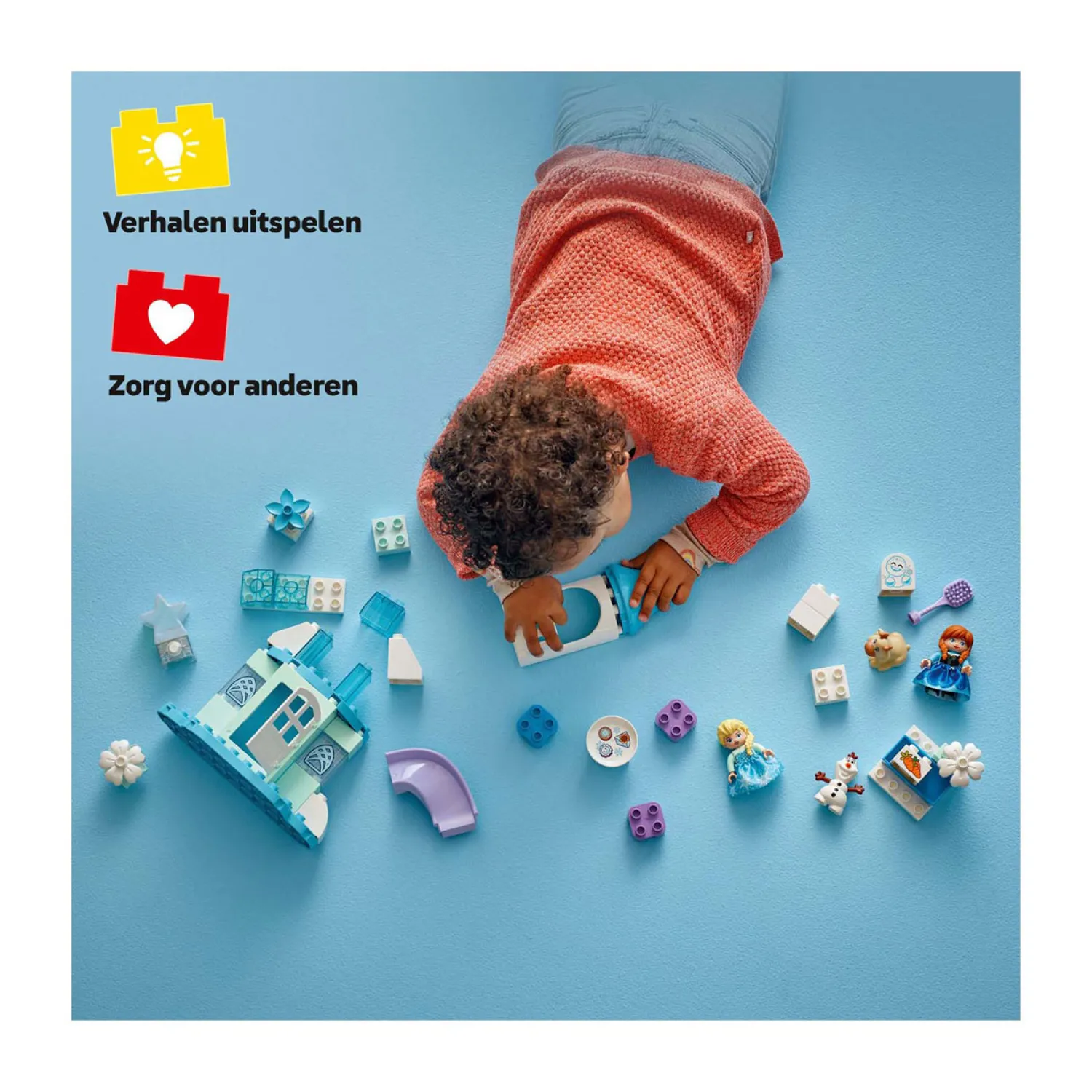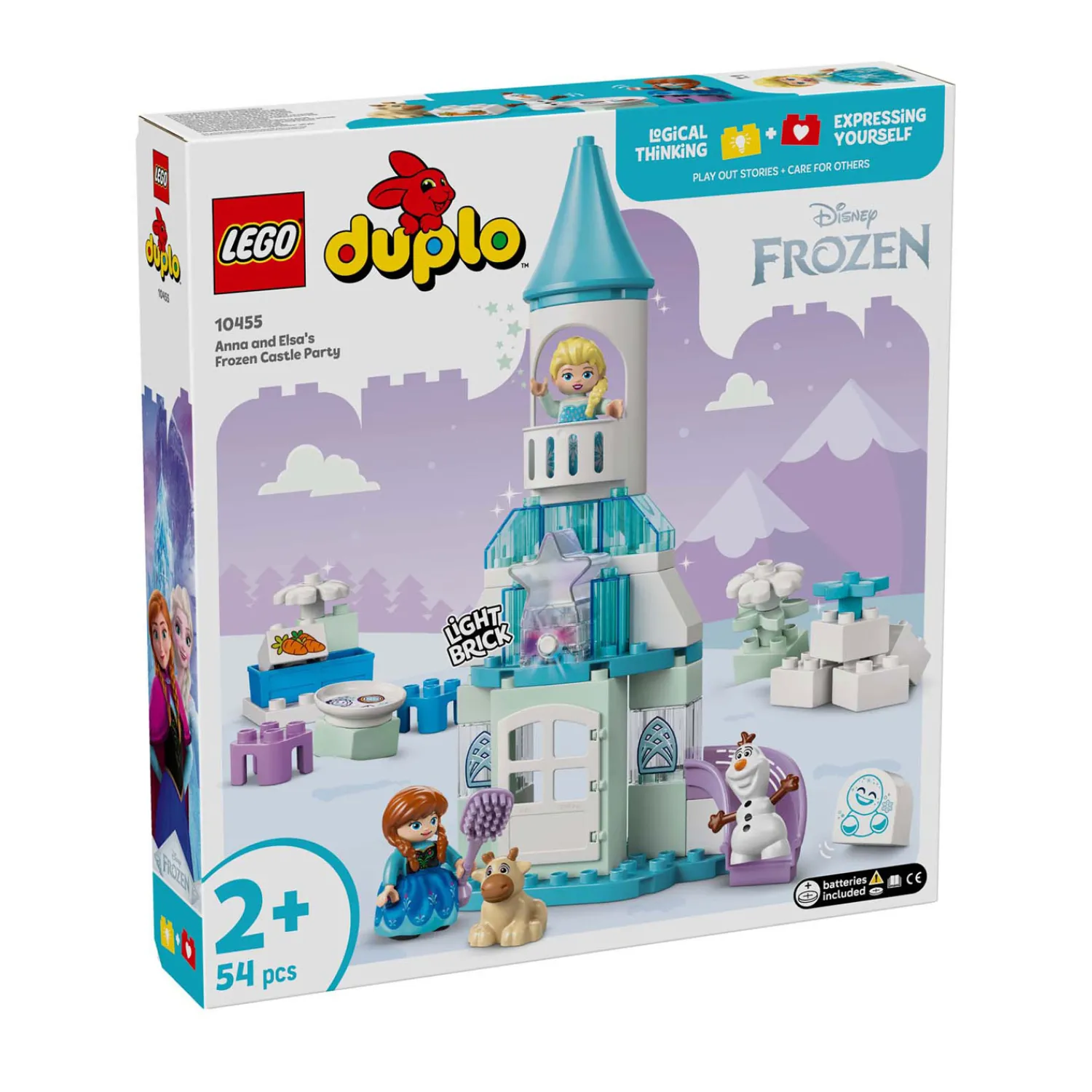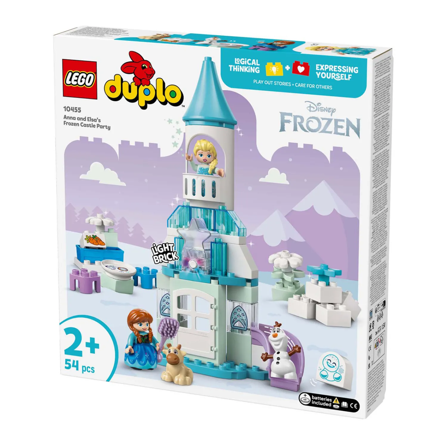 Frozen kenmerken – de set bevat 5 LEGO® DUPLO® �? Disney personages: Elsa, Anna, Marshmallow de Snowgie, baby Sven en Olaf, plus accessoires zoals een glijbaan, voederbak en borstel