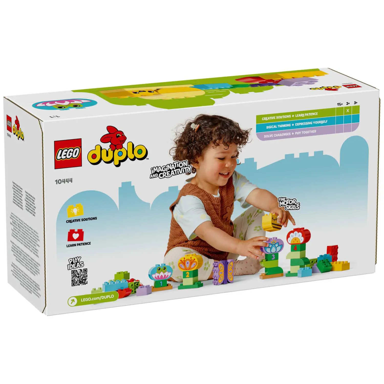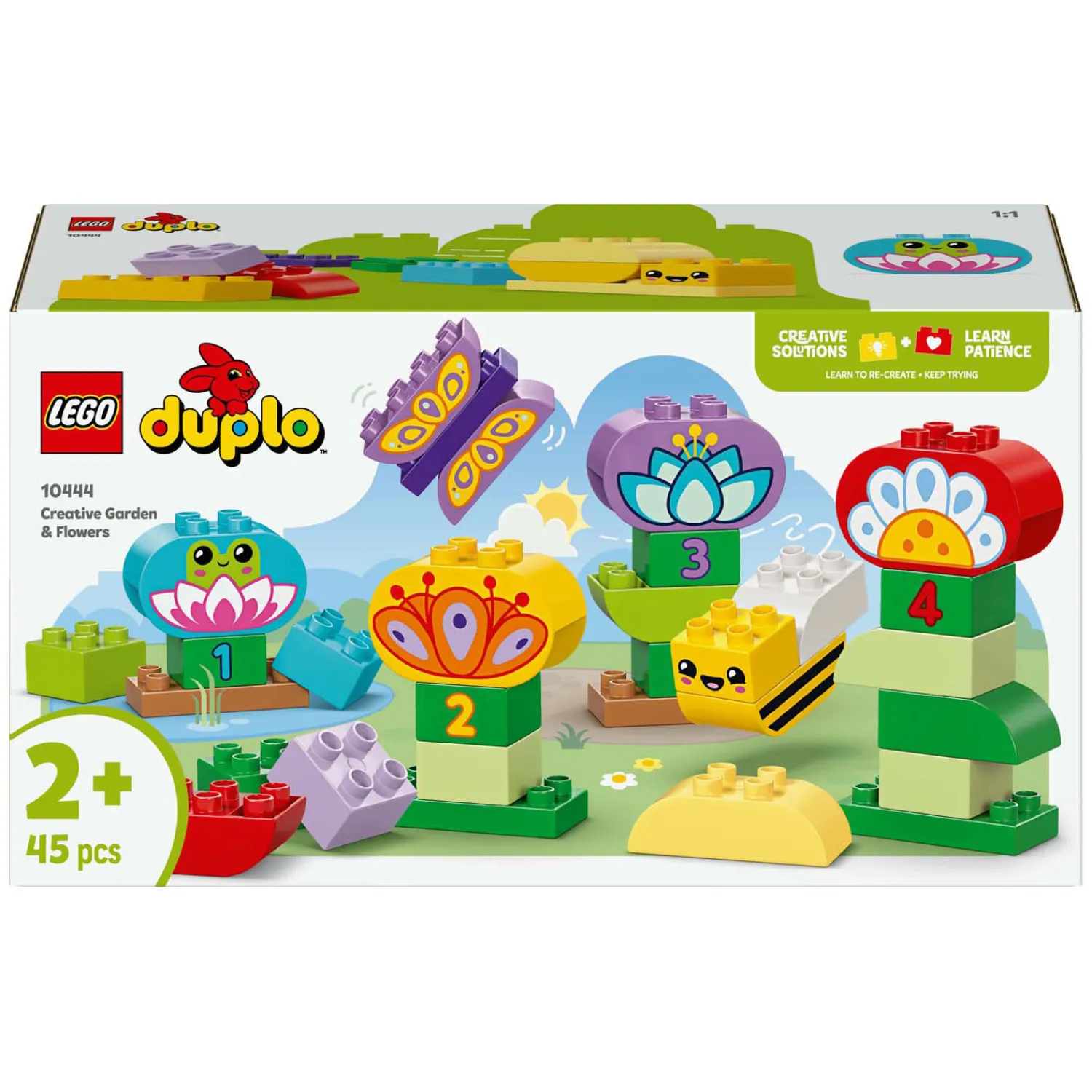 Laat de creativiteit en fijne motoriek van je peuter tot bloei komen met het LEGO® DUPLO® Stad Creatieve bloementuin (10444) stapelspeelgoed. Deze bouwset met 45 stenen, waaronder kleurrijke bloemen en schattige LEGO DUPLO dieren, inspireert kinderen om een mooie tuin te bouwen die ze keer op keer kunnen veranderen.Dit leerzame speelgoed stimuleert de fantasie van peuters door ze te helpen de wereld die ze elke dag zien na te maken. Terwijl ze de 45 stenen gebruiken om hun speelgoedtuin te bouwen, oefenen peuters met getallen, kleuren en taal. Ze ontwikkelen ook hun doorzettingsvermogen wanneer ze de verschillende stenen stapelen om wezens en bloemen te creëren.Ben je op zoek naar een leuk cadeau voor een peuter? Dit creatieve speelgoed bevat veel stenen, zodat peuters de creatieve vrijheid hebben om de tuin op hun manier te maken. Ze kunnen de speelgoedfiguren van een vlinder, een bij en een kikker plaatsen waar ze maar willen en versterken ondertussen belangrijke vaardigheden!