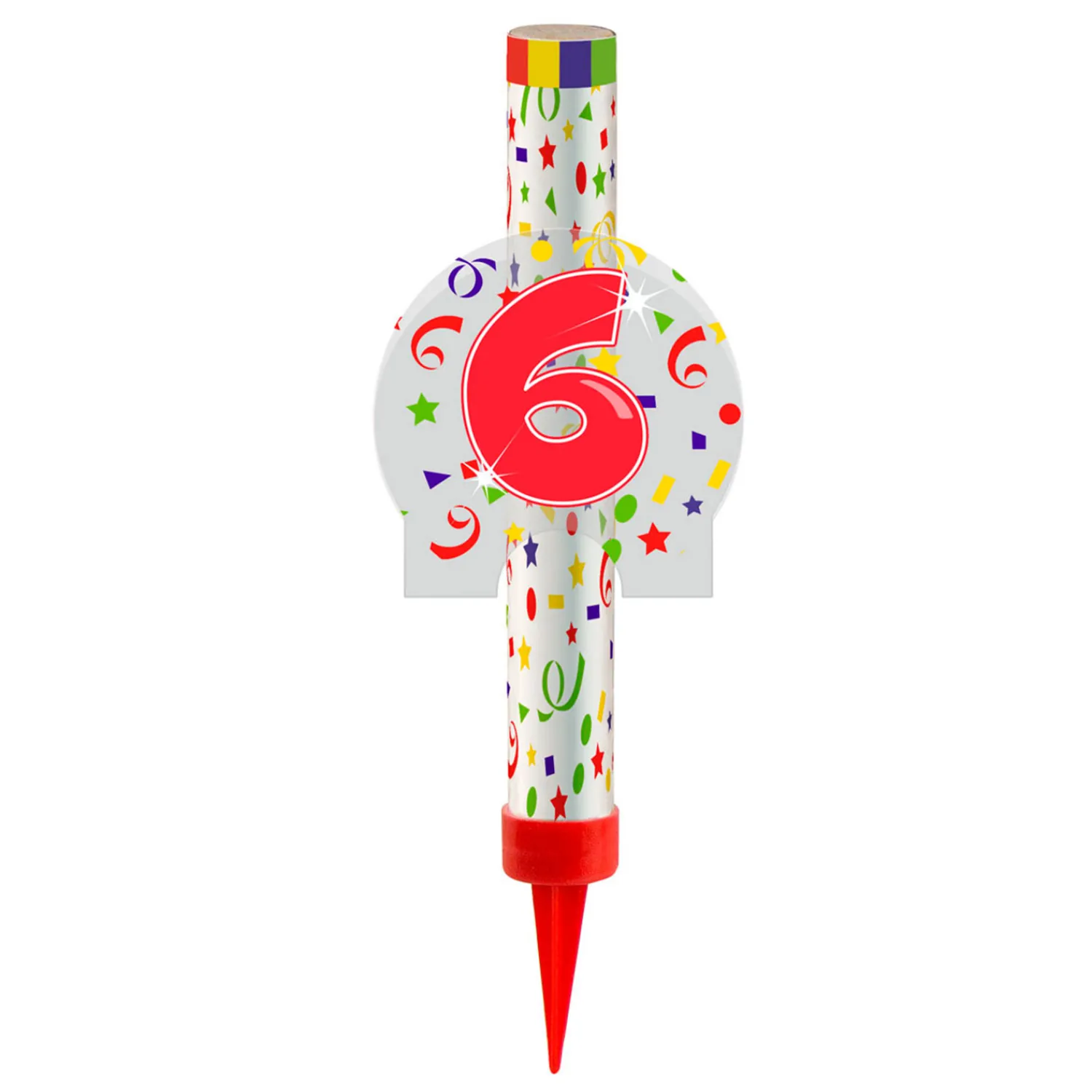 Feest ijsfontein in de vorm van het cijfer 6. Leuk voor op het gebak of een ijstaart. Brandtijd ca. 45 seconden. De ijsfontein is geschikt voor gebruik binnenshuis. Inclusief handig aansteekstokje.