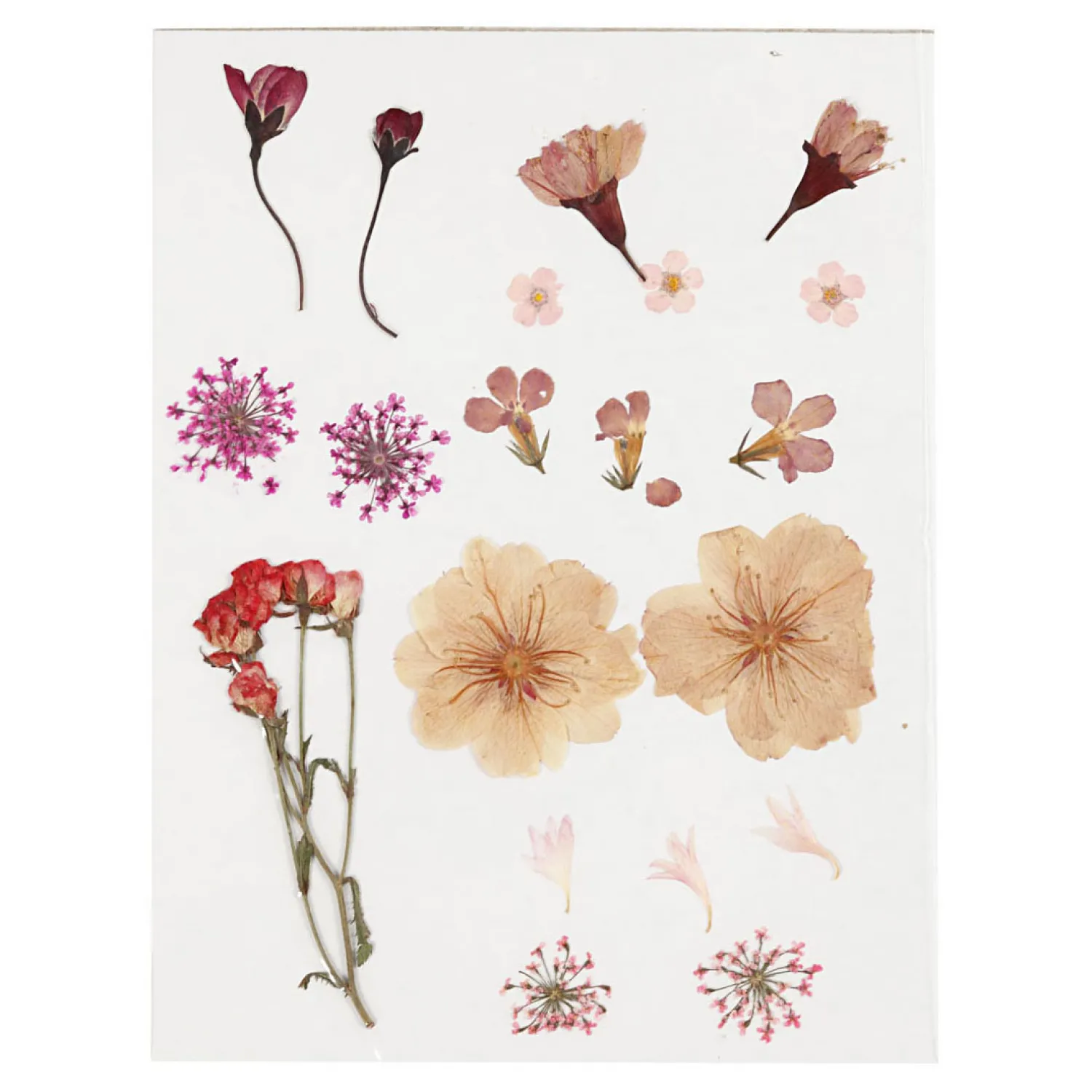 Echte, geperste en gedroogde bloemen en bladeren bedoeld voor decoratie op kaarten, dozen, enz. Makkelijke te bevestigen met Easy Glue. I.v.m. de breekbaarheid adviseren wij een pincet te gebruiken (artikelnr. 13064)