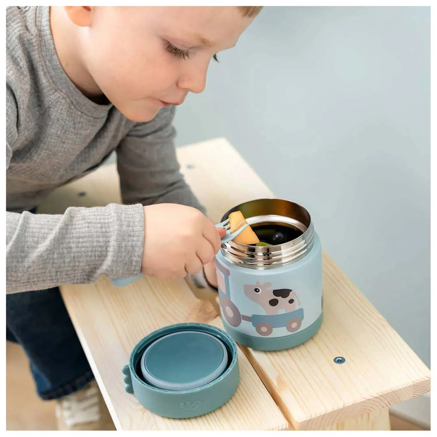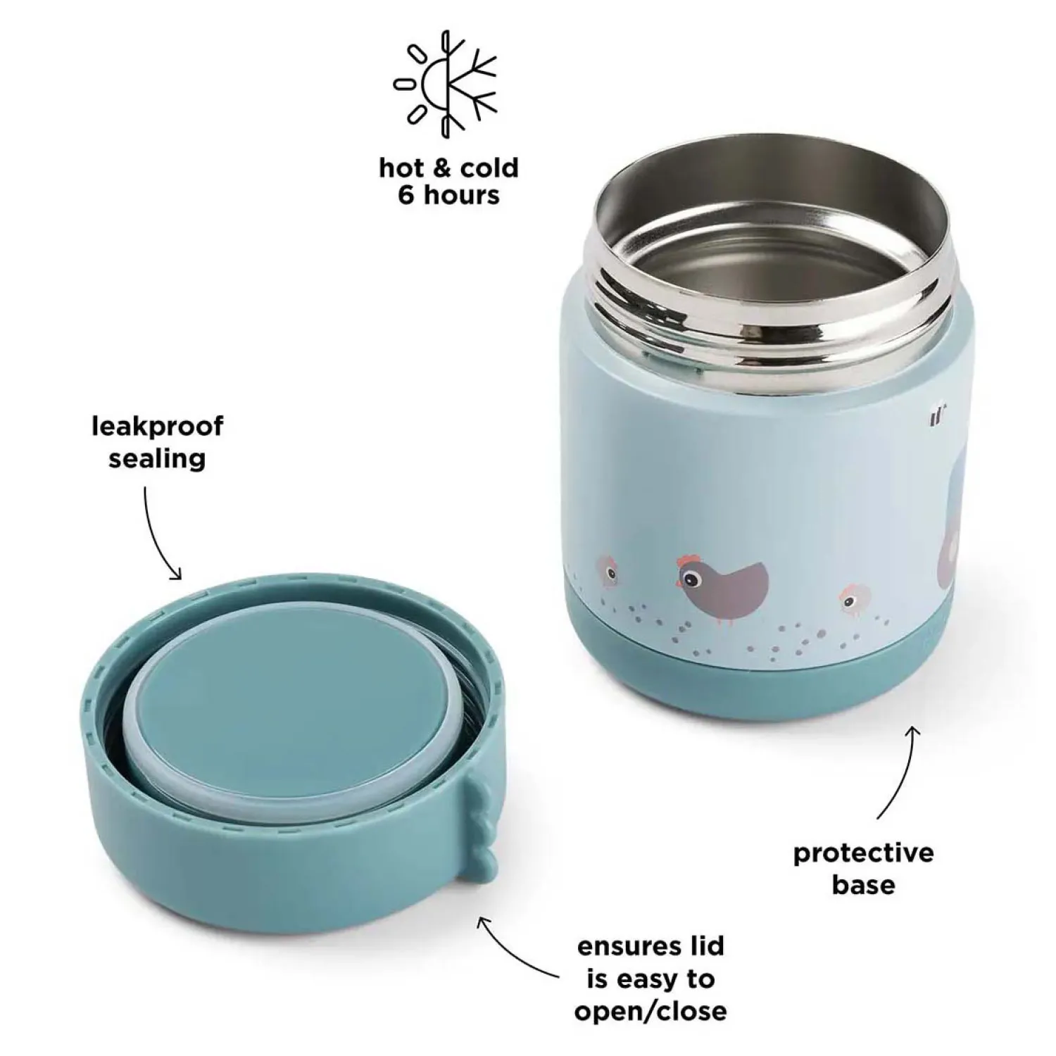 De doordacht ontworpen brede opening maakt het gemakkelijk om te vullen, eruit te eten en schoon te maken – perfect voor zowel ouders als kleine eters. Met een inhoud van 300 ml is hij precies de juiste maat voor kleine porties warme maaltijden of gekoelde snacks gedurende de dag – van ontbijt tot middagpauze.