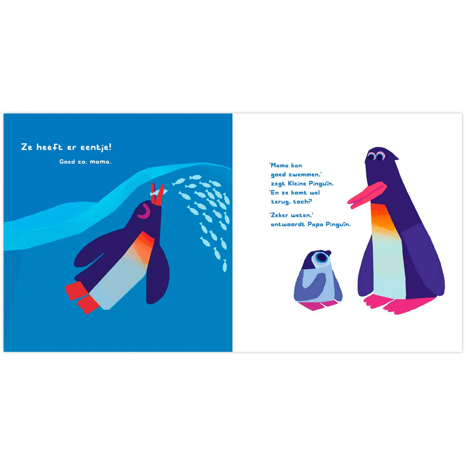 De eigenwijze stijl en droge humor van Chris Haughton spatten weer van de pagina’s. Zijn prentenboek ‘Mama kwijt’ werd Prentenboek van het Jaar 2012 en ook ‘Komt goed, kleine krab’ is inmiddels een echte klassieker. Dit boek van Chris Haughton is weer een feest om voor te lezen en te bekijken. Met platen vol heerlijk koddig waggelende, flipperende en glijdende pinguïns tegen een achtergrond van een wederom verrassend palet aan kleuren.