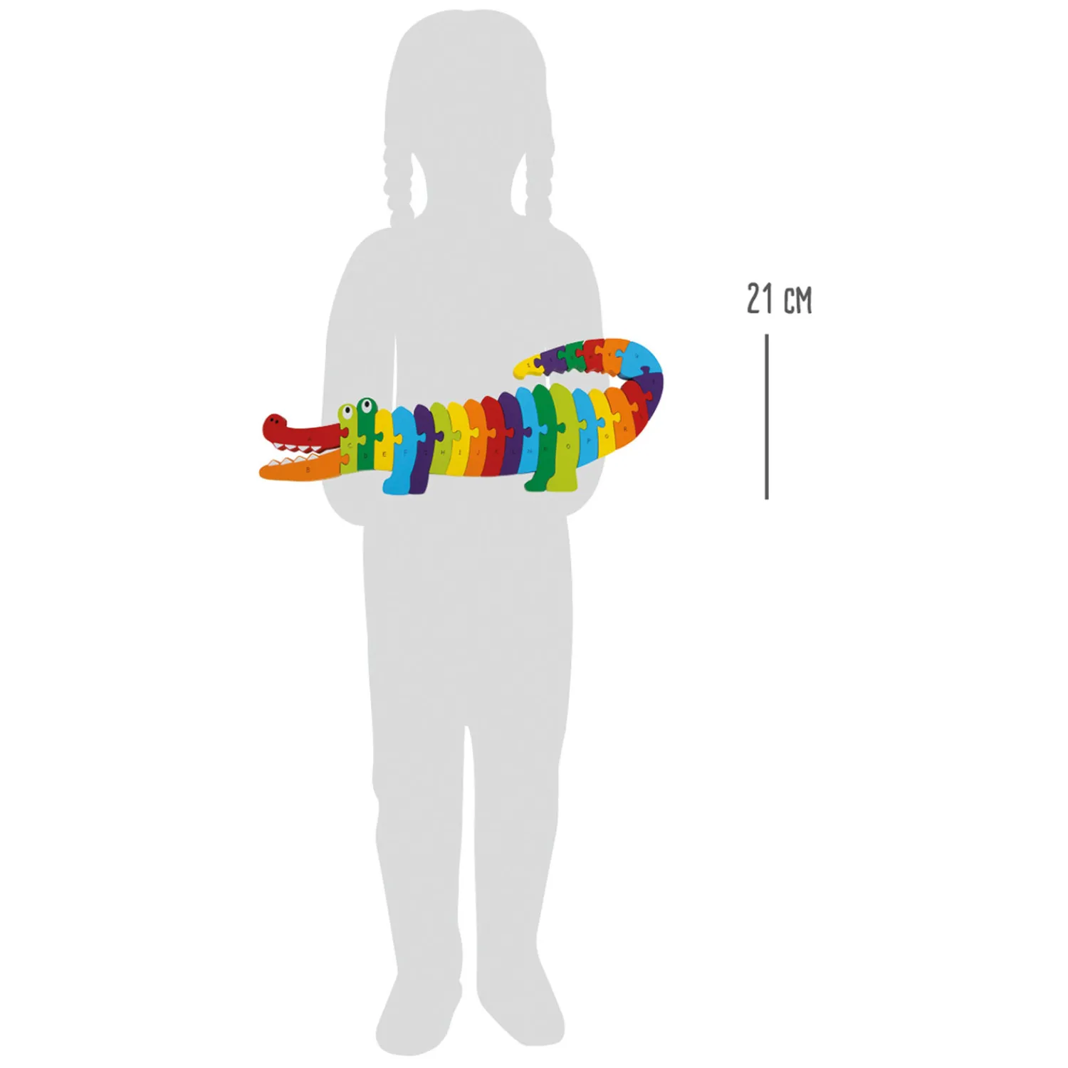 Geweldig puzzelplezier met een geweldig leereffect voor de kleintjes. Deze grappige krokodil bestaat uit 26 kleurrijke stukjes, elk met een letter. Nu moet je het dier in de juiste vorm zetten en het abc in de juiste volgorde. Bij uitstek geschikt voor (kleuter)schoolkinderen.