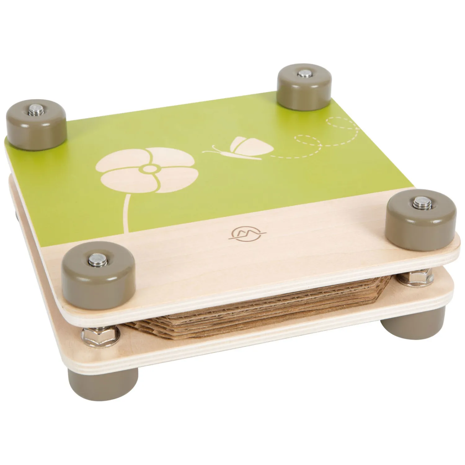 Bloemen zijn een fascinerend onderdeel van de natuur, en kinderen houden ervan om hun eigen kleine verzameling bloemblaadjes, bloemen en bladeren te hebben. Met de bloemenpers voor kinderen uit de “Discover” productlijn kunnen zelfs jonge kinderen hun favoriete bloemen en bladeren bewaren en hun creativiteit vrij laten stromen. Het gebruik van de bloemenpers is heel eenvoudig. De kartonnen stukken en twee vellen papier worden op elkaar gelegd, en bloemen en bladeren kunnen tussen de stukken worden geplaatst en geperst. Het bijgeleverde papier beschermt niet alleen de geperste objecten, maar absorbeert ook overtollig vocht. Hiermee kunnen kinderen lang genieten van hun verzamelde bloemen en hebben ze altijd genoeg materiaal om te knutselen of te versieren! Deze bloemenpers is niet alleen een praktisch knutselgereedschap, maar ook een echte blikvanger voor de knutseltafel. Let op: het wordt aanbevolen om elke bloem of blad ongeveer 5-10 dagen te drogen, afhankelijk van het type bloem of blad.
