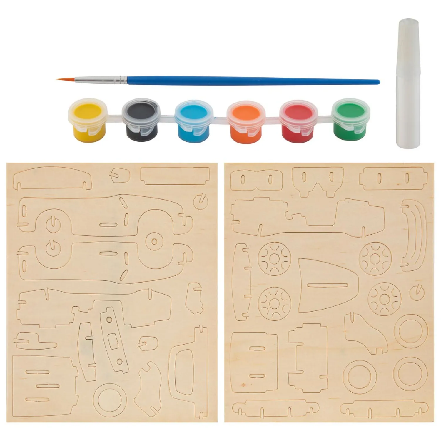 Dit bouwpakket bevat 6 verfpotjes, een kwastje en een handleiding. Gemaakt van hout en geschikt vanaf 5 jaar.