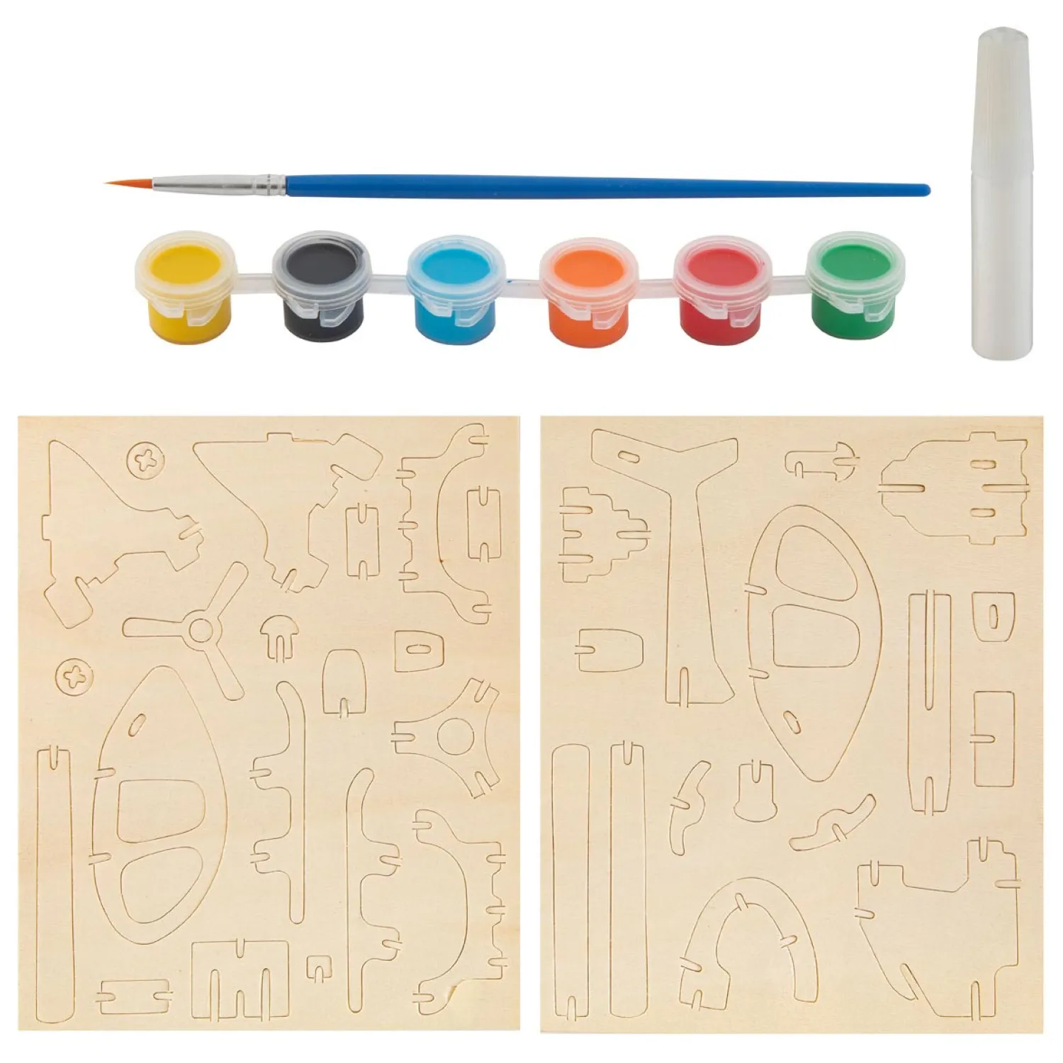 Dit bouwpakket bevat 6 verfpotjes, een kwastje en een handleiding. Gemaakt van hout en geschikt vanaf 5 jaar.