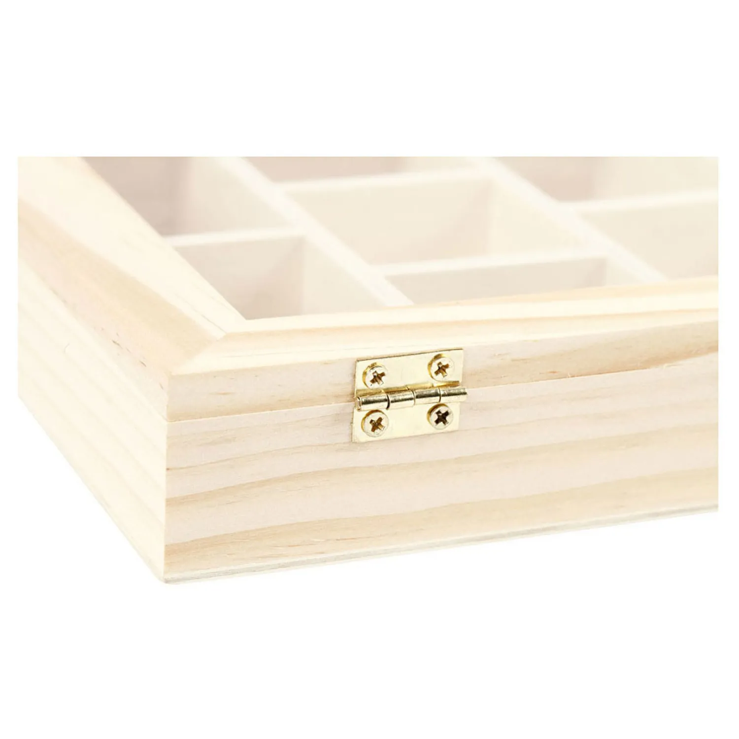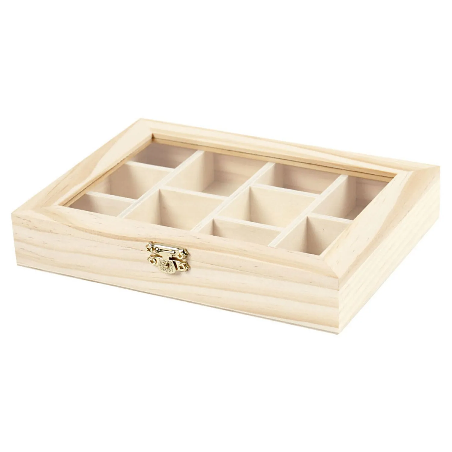 Houten Doos met Glazen Deksel en 10 vakken-Creativ Company