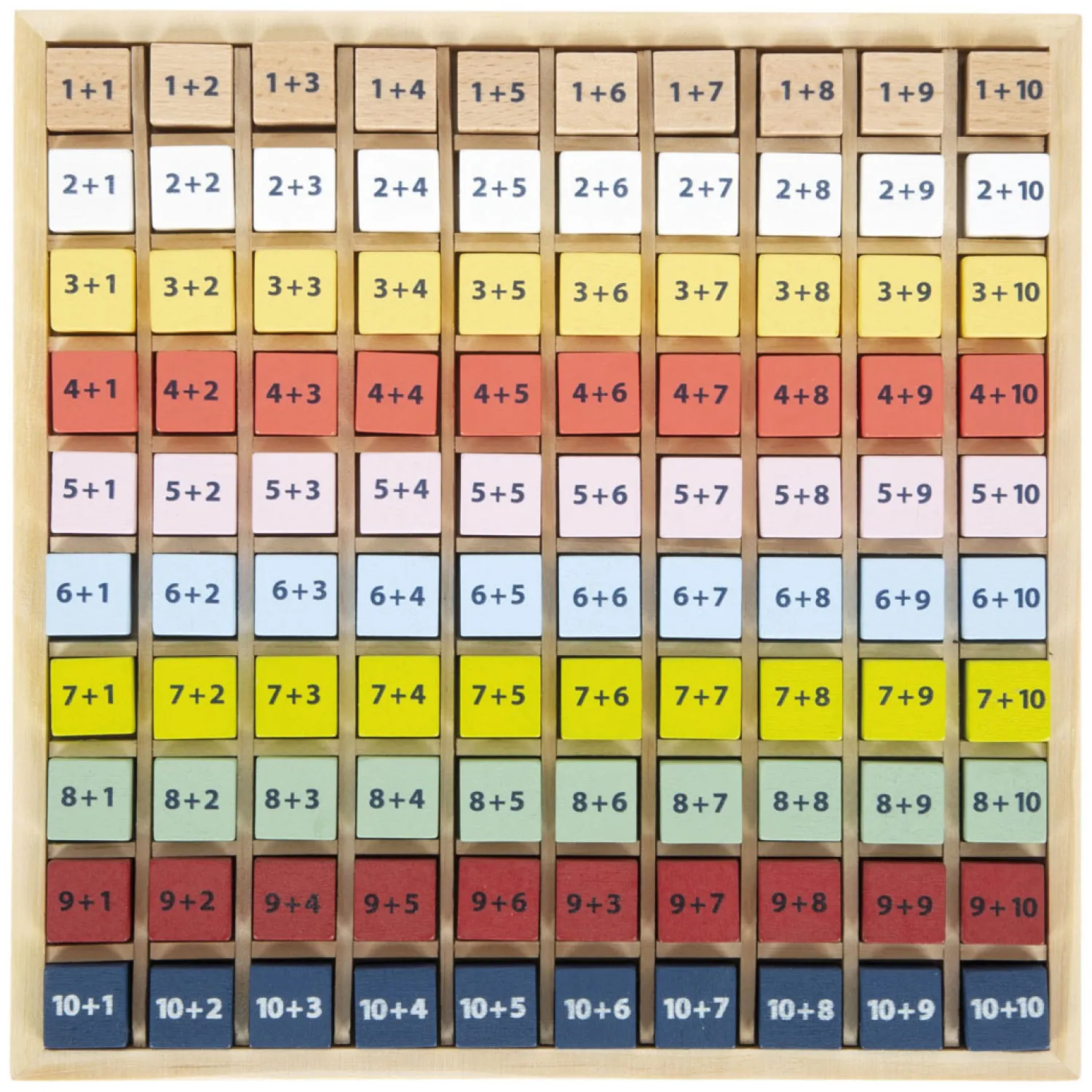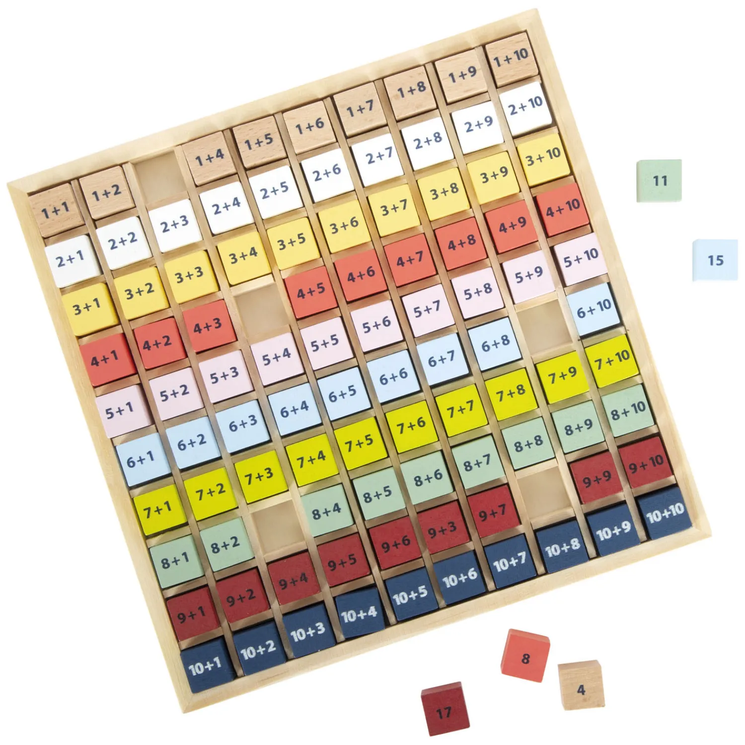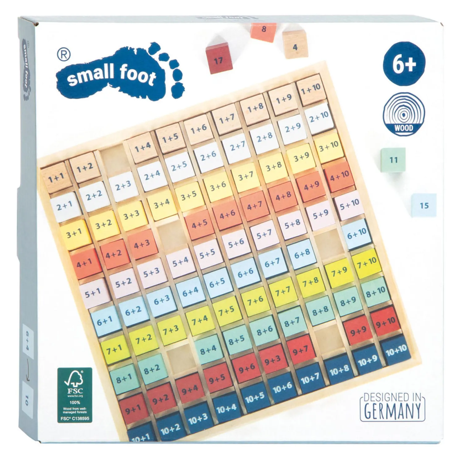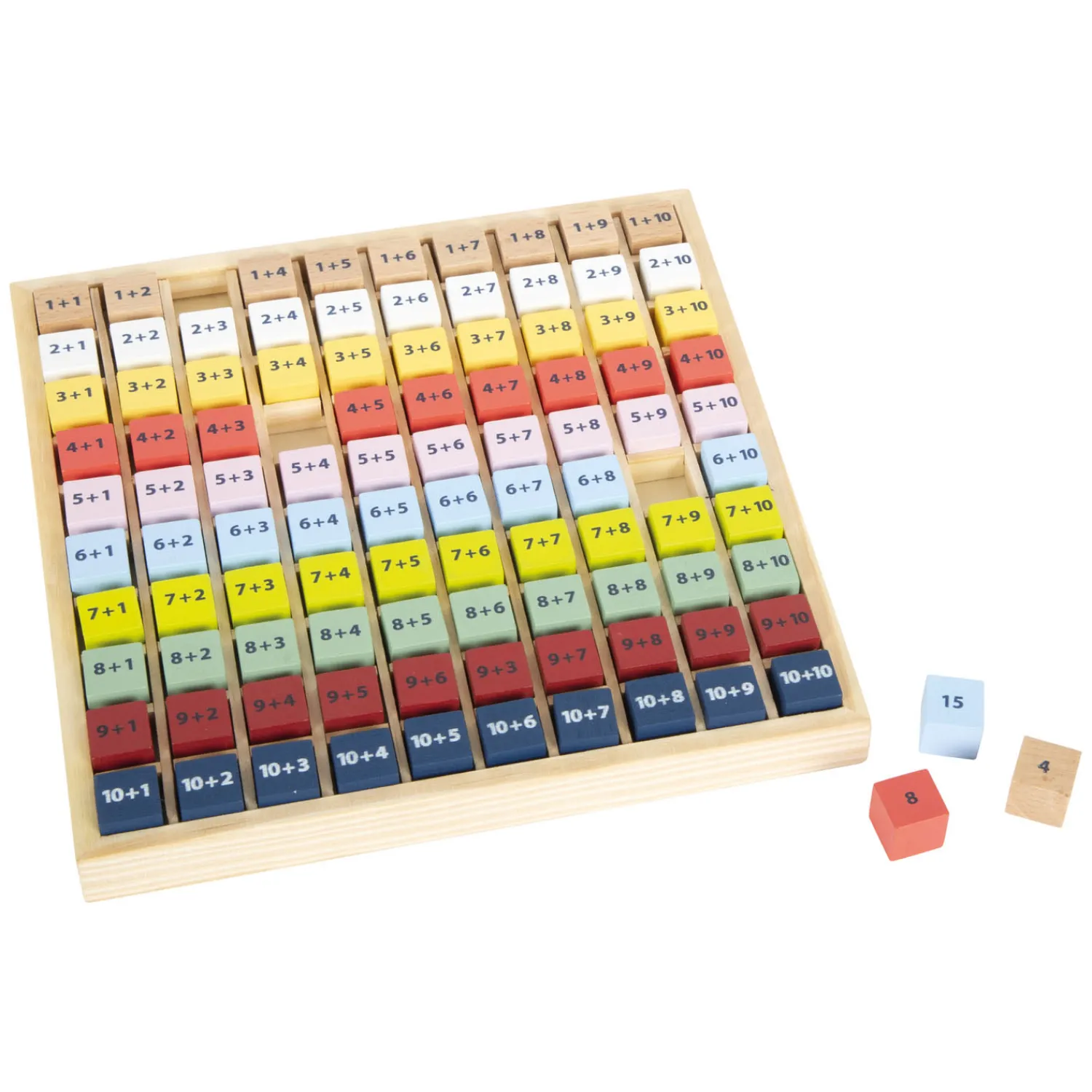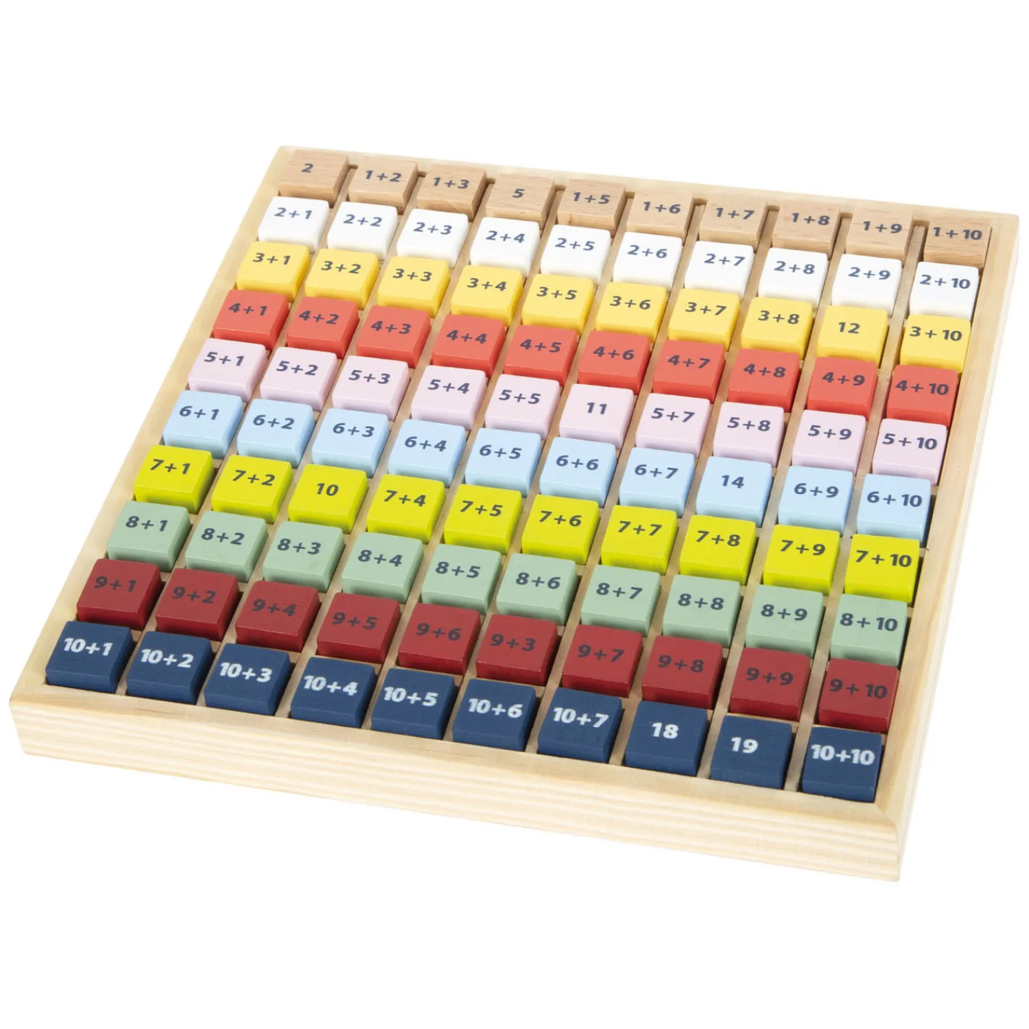 Deze educatief waardevolle rekenhulp van massief hout nodigt basisschoolkinderen op speelse wijze uit om keer op keer te oefenen met optellen met getallen tot 20 terwijl ze de wereld van getallen verkennen. Alle rekensomkubussen passen perfect in het bord en schuiven niet rond. Het plaatsen van de kubussen in hun gleuven traint ook de fijne motoriek van kinderen. Hier is een tip: dit leerspel is ideaal voor onderweg en een geweldig cadeau voor de schooltas en schoolinschrijving vanwege zijn compacte formaat.