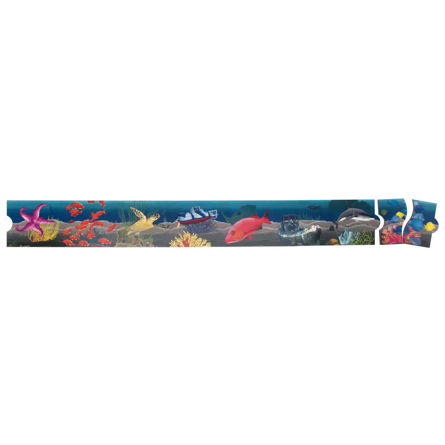 Ga op je knieën op zoek naar de twee puzzelstukken die samen een zeedier vormen. Heb je ze allemaal gevonden, maak er dan een lange rij van. Het eerste dier van de rij sluit weer aan bij het laatste dier van de rij. Zo kan het steeds verder gaan en beleef je eindeloos puzzelplezier. Deze vloerpuzzel heeft een formaat van 112 x 12 cm.