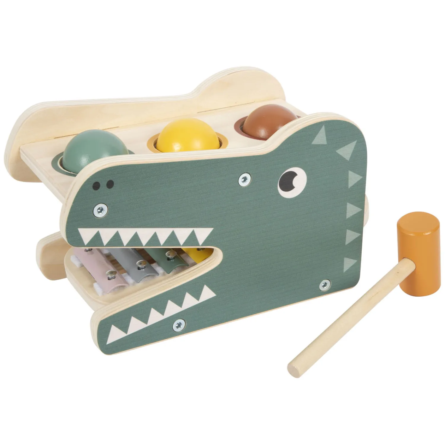 Deze hamerbank is een krokodil en biedt een geweldige introductie in de wereld van geluiden! De xylofoon traint de akoestische waarneming en het gevoel voor ritme en ritme wanneer kinderen er muziek mee maken, terwijl ze een eerste begrip van klanken en toonladders bijbrengen. De hamerbank traint de motoriek en leert op een leuke manier het oorzaak-en-gevolgprincipe kennen.