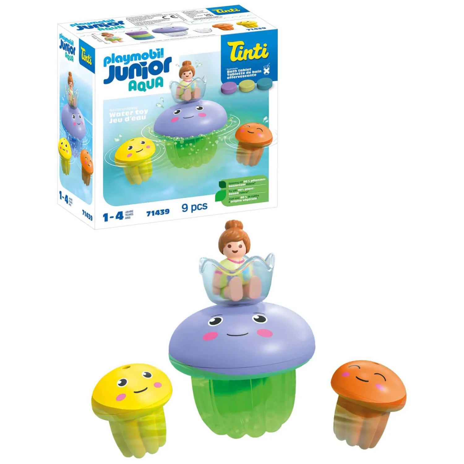– Drie Tinti badtabletten in de kleuren groen, turquoise en paars met aardbeiengeur