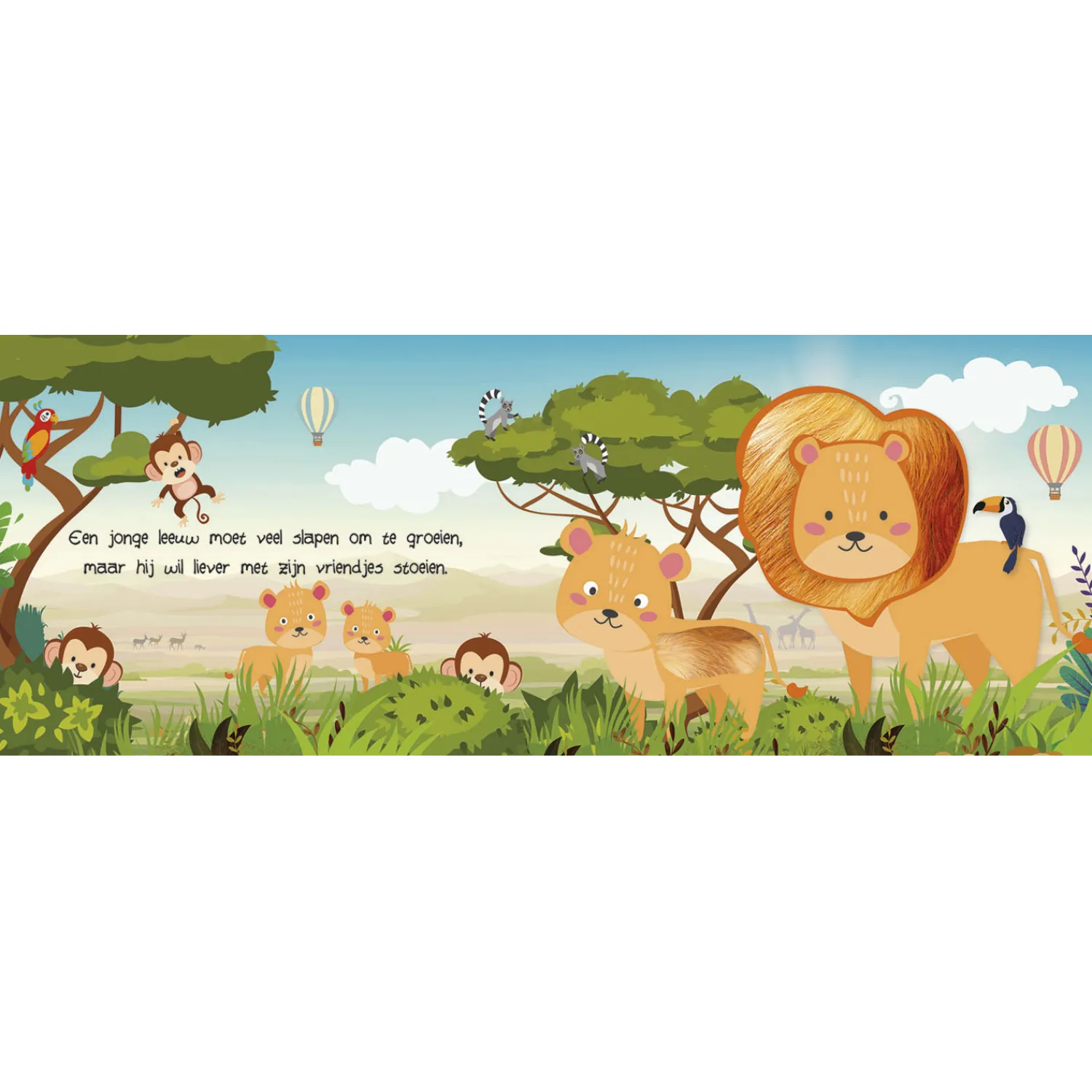 Stevig boekje voorzien van mooie illustraties en stofjes en lieve rijmpjes, om voor te lezen maar waarmee je kindje ook zelf kan spelen en ontdekken.