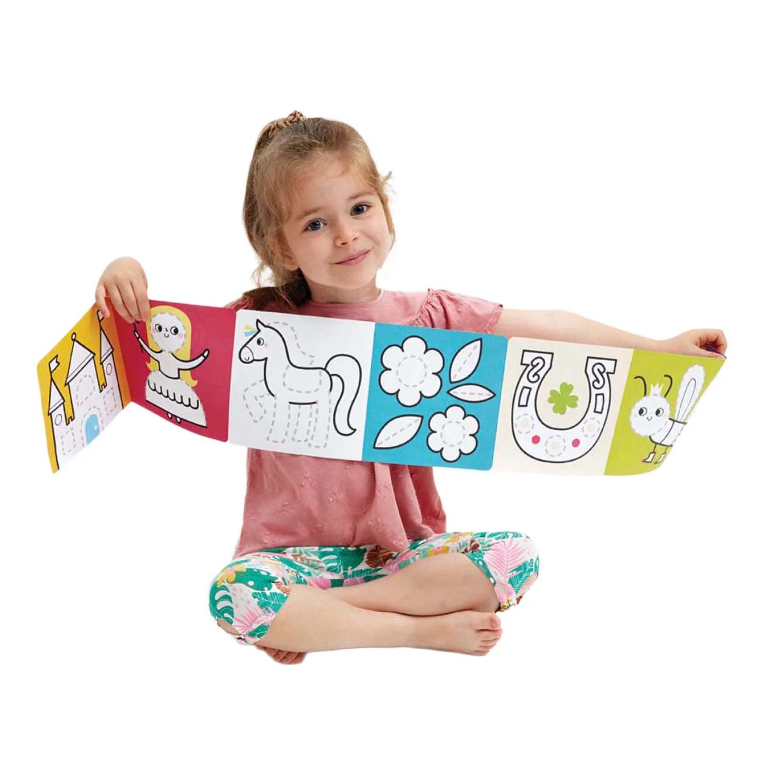 Bestaat uit 56 afzonderlijke enveloppen, elk met 2 extra lange (16×96 cm) kleurboeken.