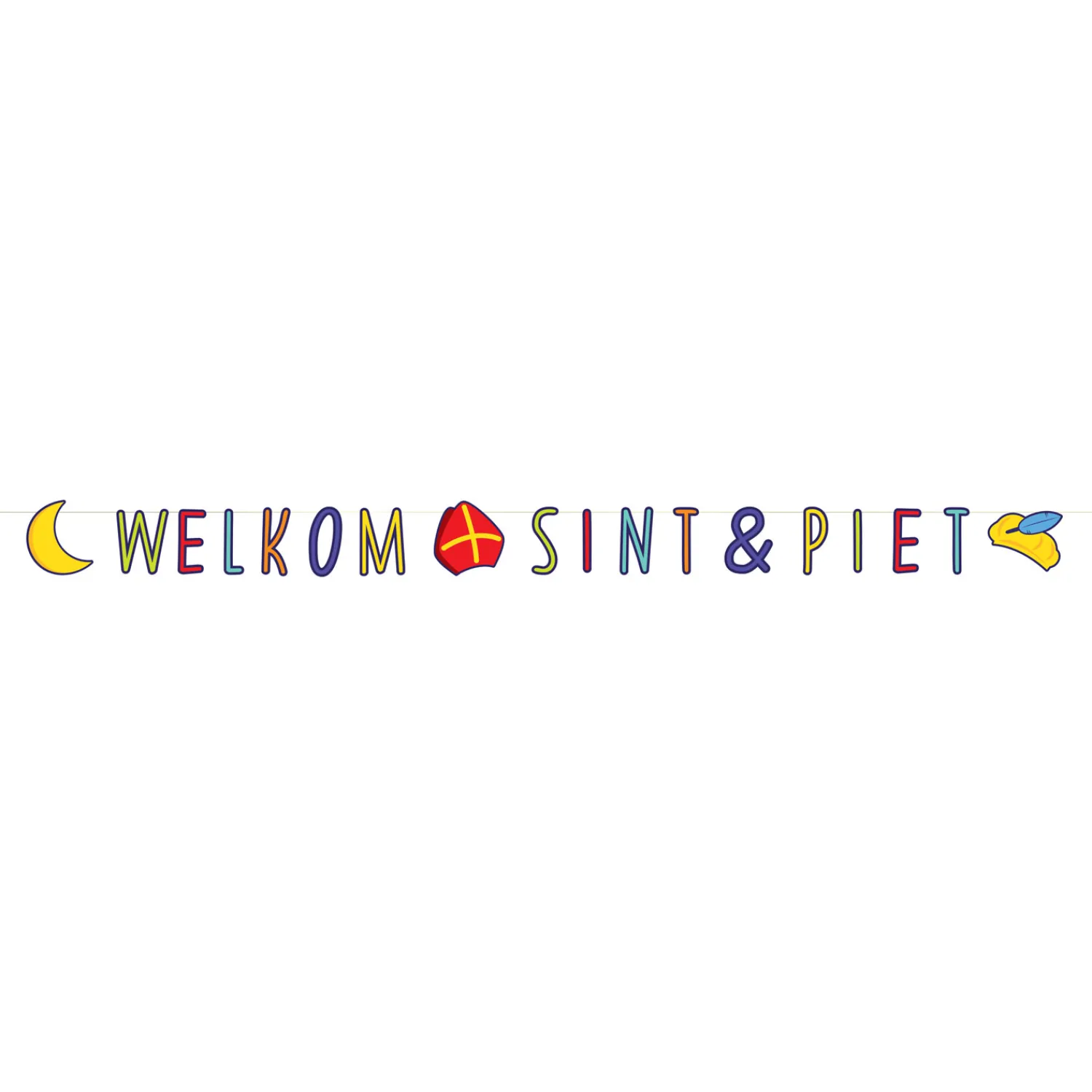 De slinger is 3 meter breed en de letters zijn 10 cm hoog.