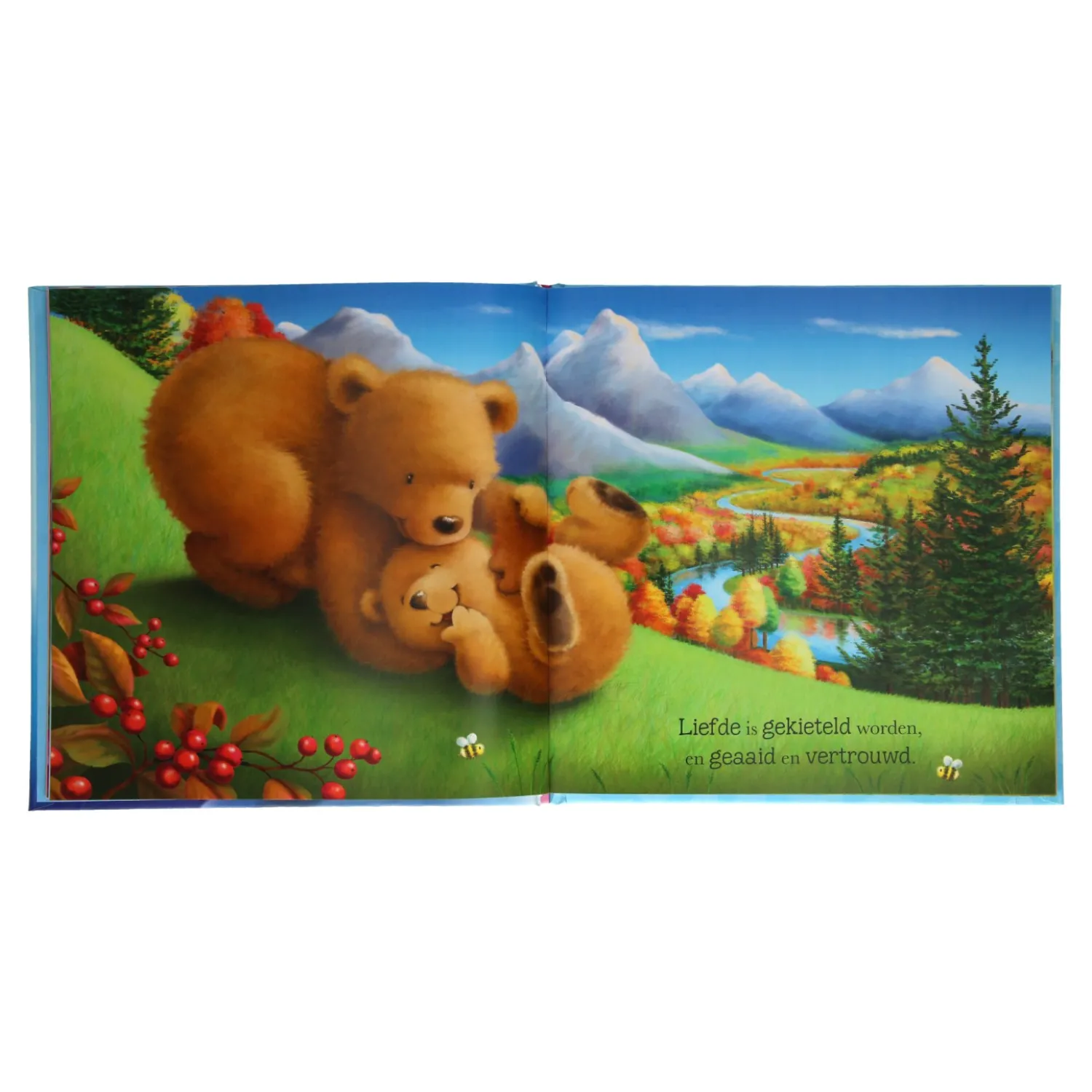 Liefde is… tegen elkaar aankruipen als het donker is en koud. Liefde is lekker knuffelen en lieve woordjes fluisteren. Liefde is het mooiste cadeau dat je ooit hebt gehad! In dit prachtig geïllustreerde boek zie je hoe dieren (en mensen!) elkaar liefhebben. ‘Liefde is…’ is een prachtig geschenk voor de kinderen die je liefhebt, zodat zij leren wat liefde is. Een lief verhaaltje om samen te delen!