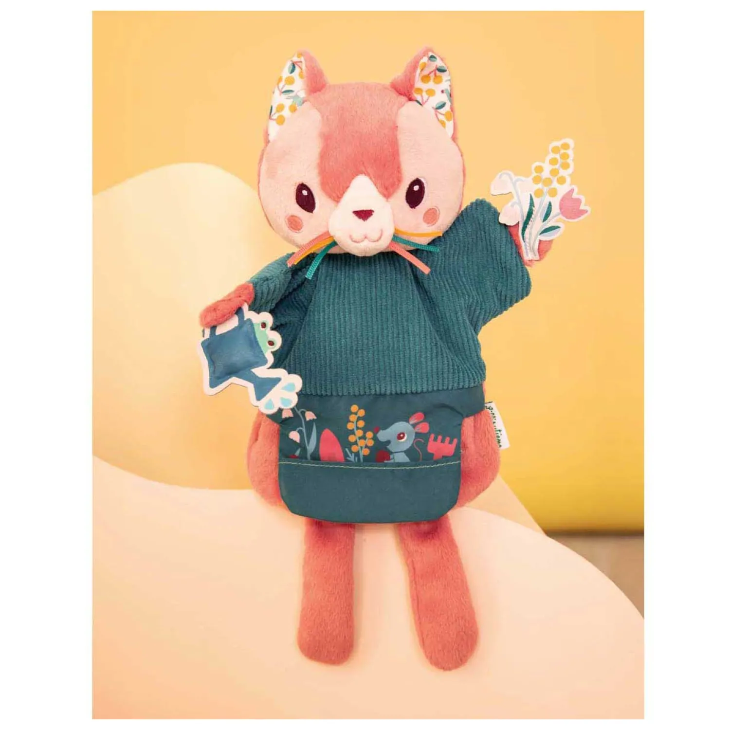 Als je kind groter wordt, kan hij of zij zelf met Jeanne verhalen bedenken of kleine boodschapjes overbrengen, terwijl de motorische vaardigheden spelenderwijs worden geoefend. De knuffel is heel zacht, heerlijk om mee te knuffelen en gemaakt van gerecycled polyester. Met haar grappige snorretjes en kersenpatroon zal onze kleine Jeanne de aandacht van de kleintjes trekken en de groteren aan het lachen maken! Het is altijd een goed idee om een pop te gebruiken om je baby te vermaken en met je peuter te spelen. Hier is een Lilliputiens-speeltje dat je nog lang van pas zal komen!