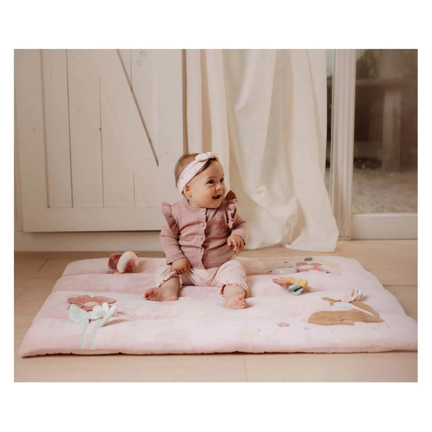 Laat je onderdompelen in de magie van de Fairy Garden op dit schattige roze boxkleed. Er valt zo veel te ontdekken en zien! Ga op avontuur om de knisperende bladeren te vinden, ontmoet het lieve zachte hertje, en speel met de vlinder en het vogeltje. Er is ook een kleine spiegel voor zelfontdekking en een transparante ring met drie kraaltjes die rammelen als ze bewegen. Dit gewatteerde boxkleed met verschillende texturen en activiteiten stimuleert de zintuigen en ontwikkeling van je kindje.