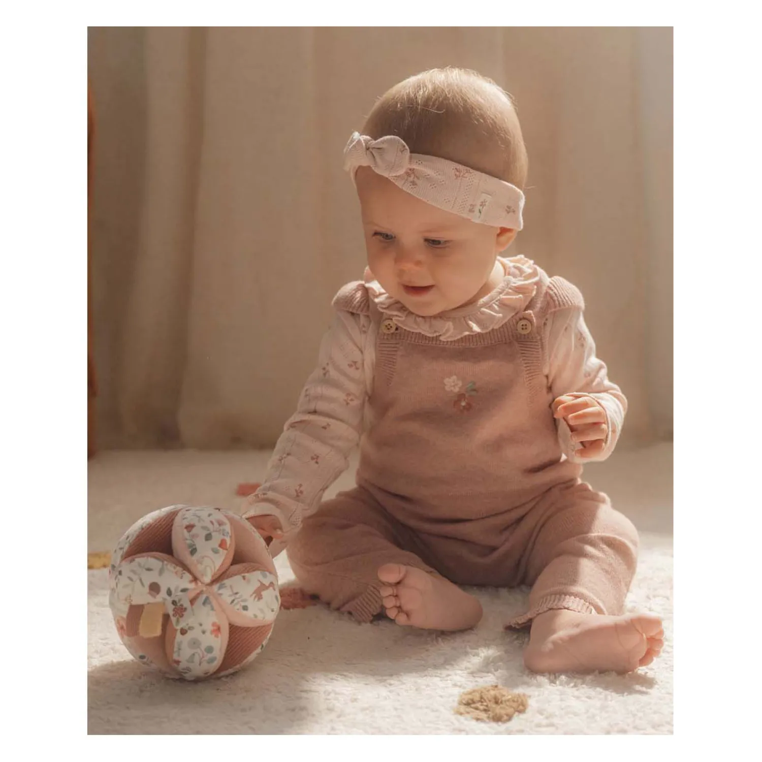 Probeer de bal maar te pakken! Deze grijpbal met zijn interessante vorm zorgt voor een geweldige uitdaging voor je kleintje. De vlakken van verschillende texturen en patronen nodigen uit om te grijpen en te verkennen. De bal is gemakkelijk op te pakken voor kleine handjes en het vrolijke geluid van het rammelende belletje beloont je baby’s inspanning. Op het mooie decor van Fairy Garden zullen de makkelijk vast te pakken verschillende leuke labels de zintuigen prikkelen, grip ontwikkelen en je baby flink bezig houden in de box.